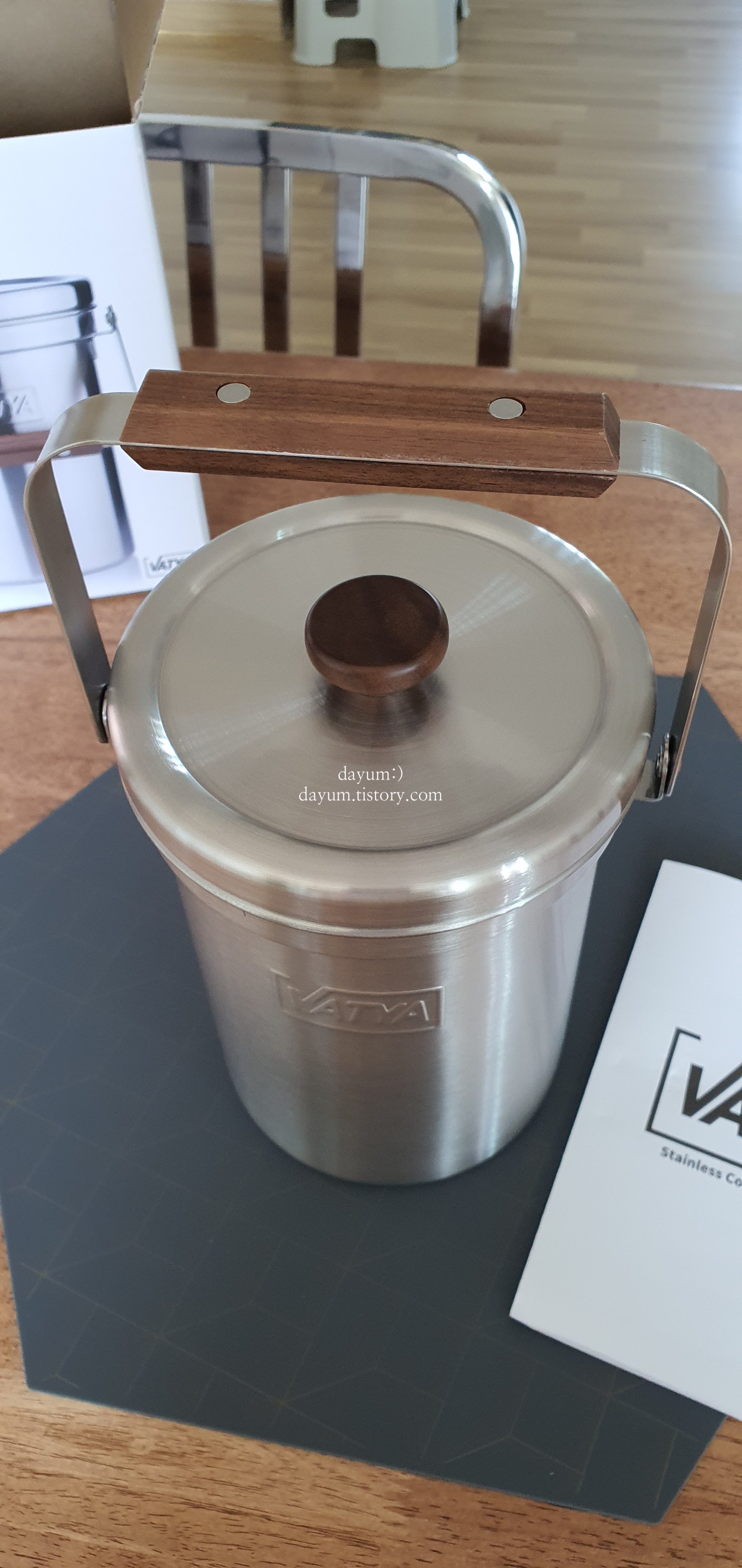 3리터 제품으로 구입했고 18-8(#304)스테인레스 스틸과 월넛(호두)나무로 만들어졌다고 한다.