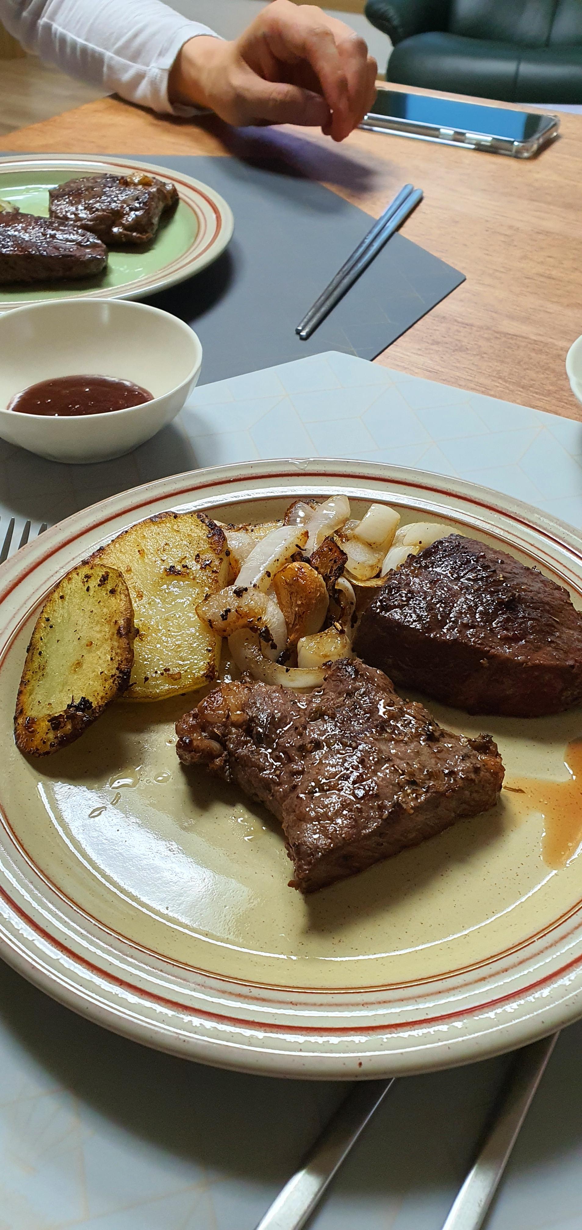 어젯밤, 갑자기 스테이크 먹고 싶대서 구워봄