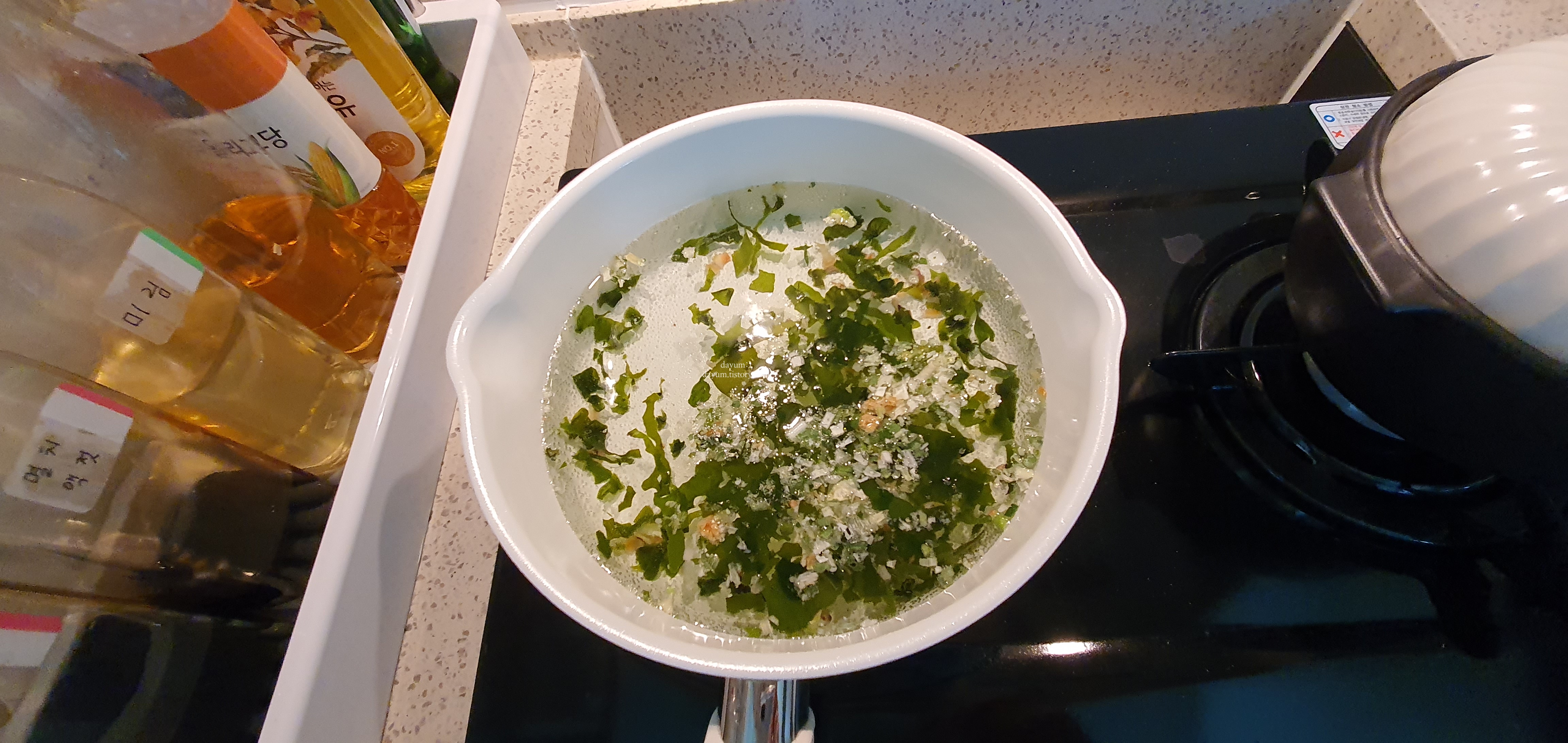가루스프가 아니라 액상스프라서 국물이 빨리 우러난다.