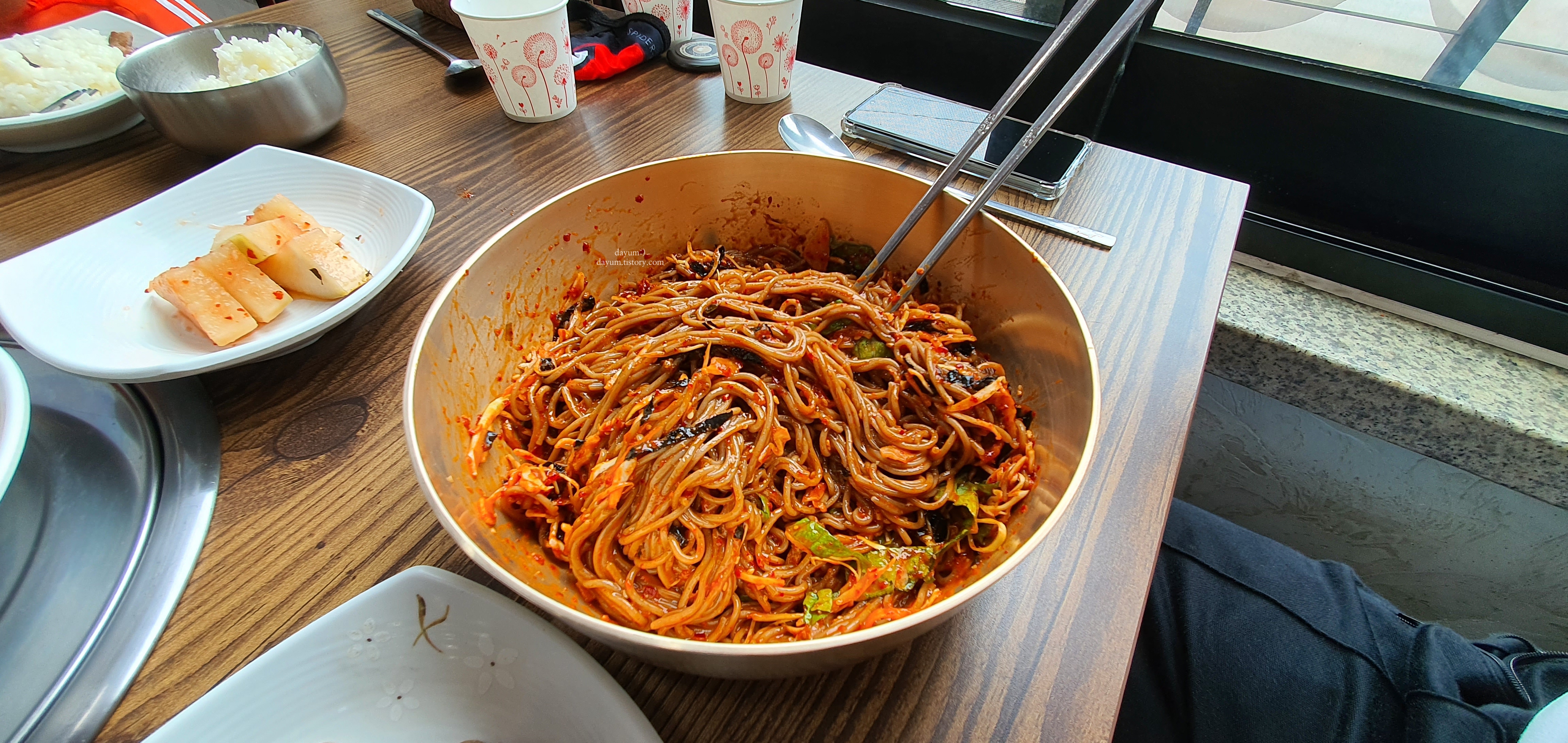 비가 와서 따뜻한 국물이나 먹을까 하면서 건너편 갈비탕집에 갔다가 휴무여서 막국수를 먹게 됐다.