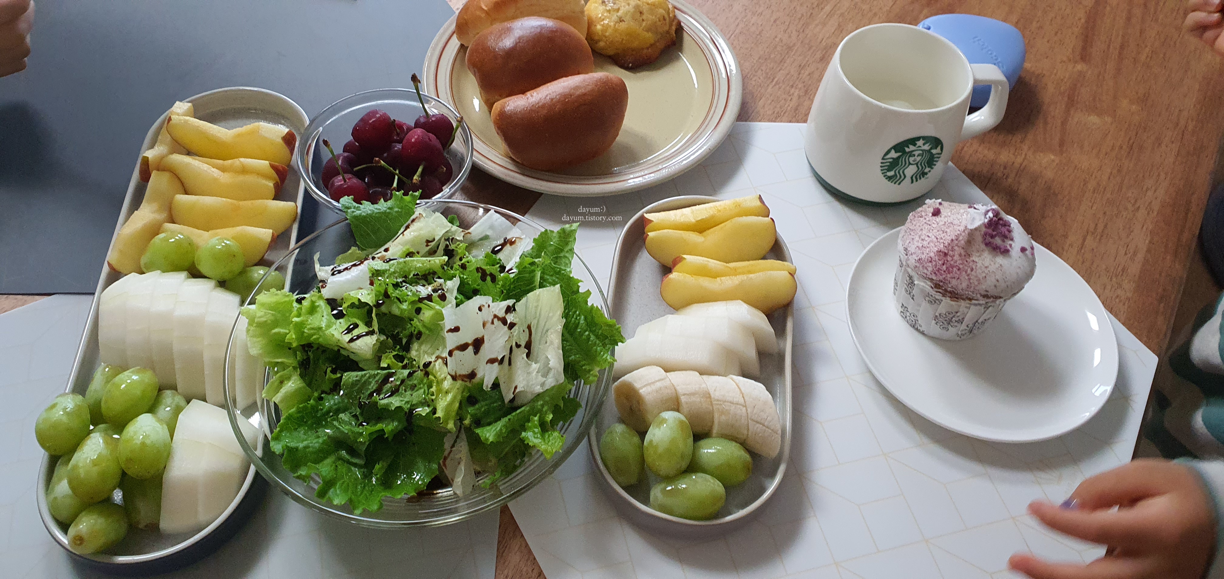 집에 과일이랑 야채뿐이라서 빵만 더 사와서 아침으로 먹었다.