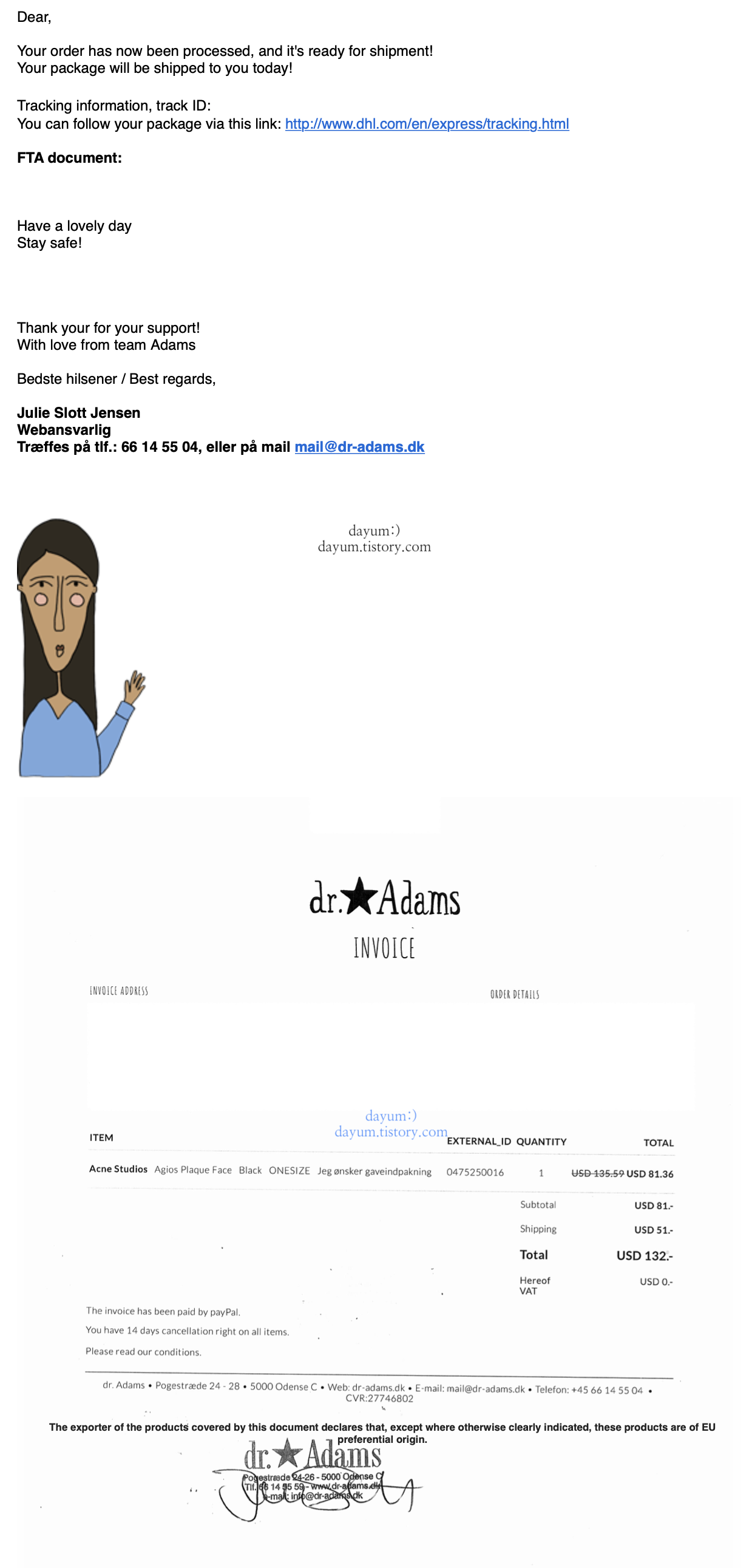 구입한 사이트는 닥터아담스, 덴마크 사이트다.