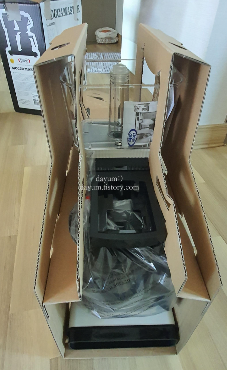 독일에서 배송되었고, 따로 포장되지 않은 머신 박스 그대로 받았다.
