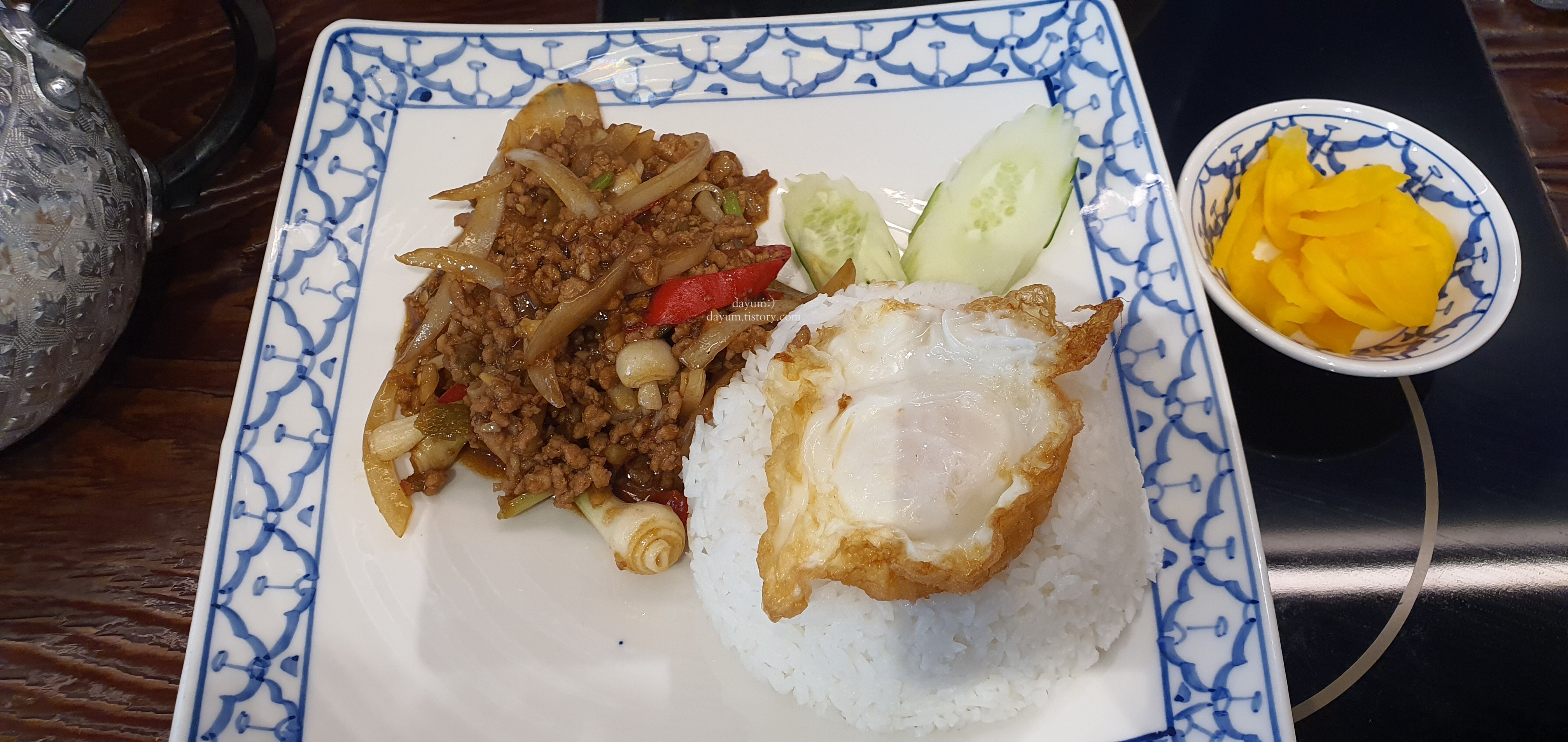 우리부부가 좋아하던 돼지고기덮밥과 똠얌쌀국수를 주문했다.