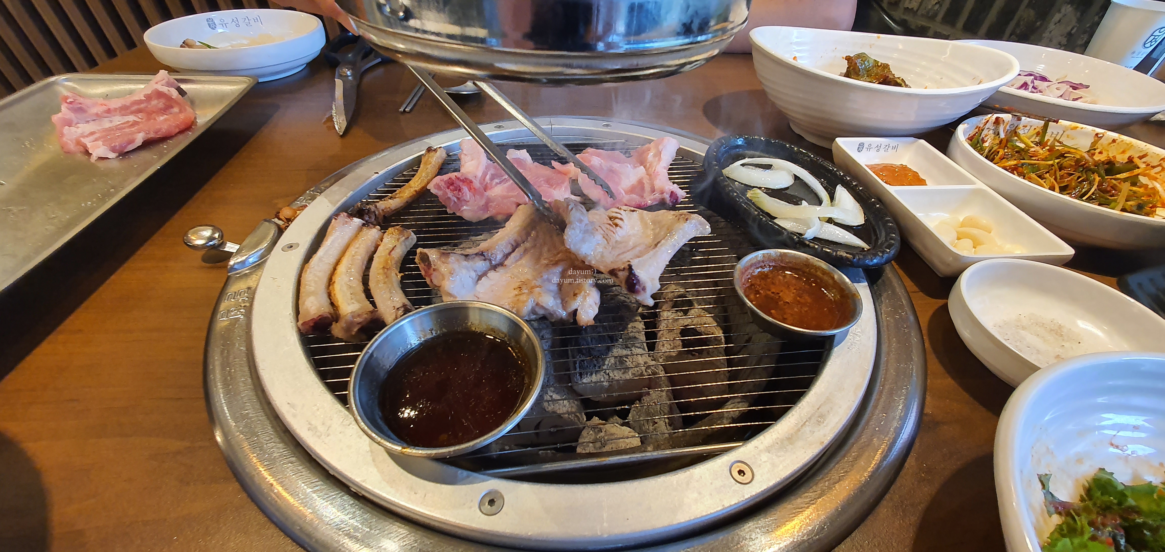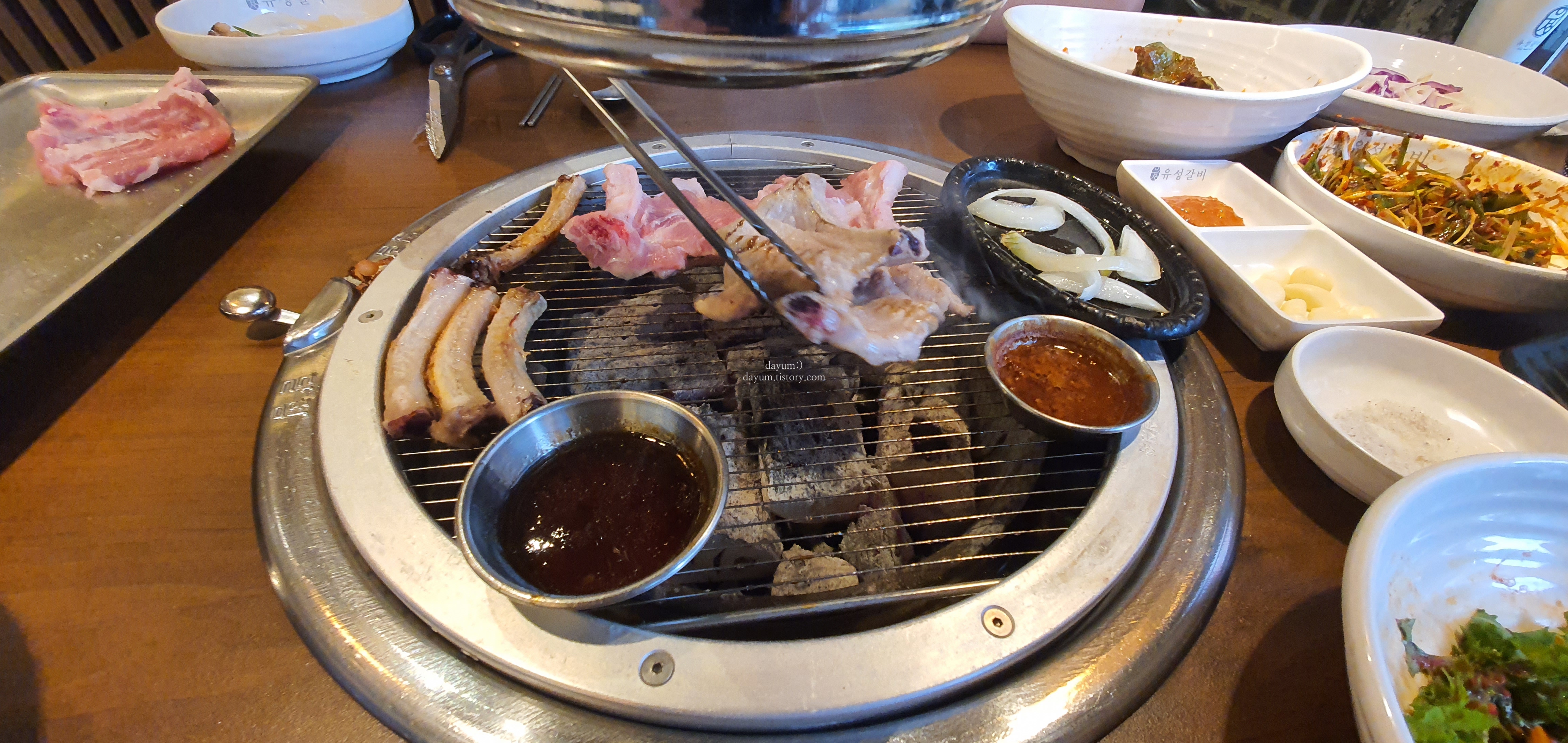 숯이 진짜 좋았던건지 불향이 잘 입혀져있었고, 등갈비먹고나서 양념갈비를 먹어서 그런가 내 입맛에는 등갈비를 소금에만 찍어먹는게 깔끔해서 제일 좋았다.