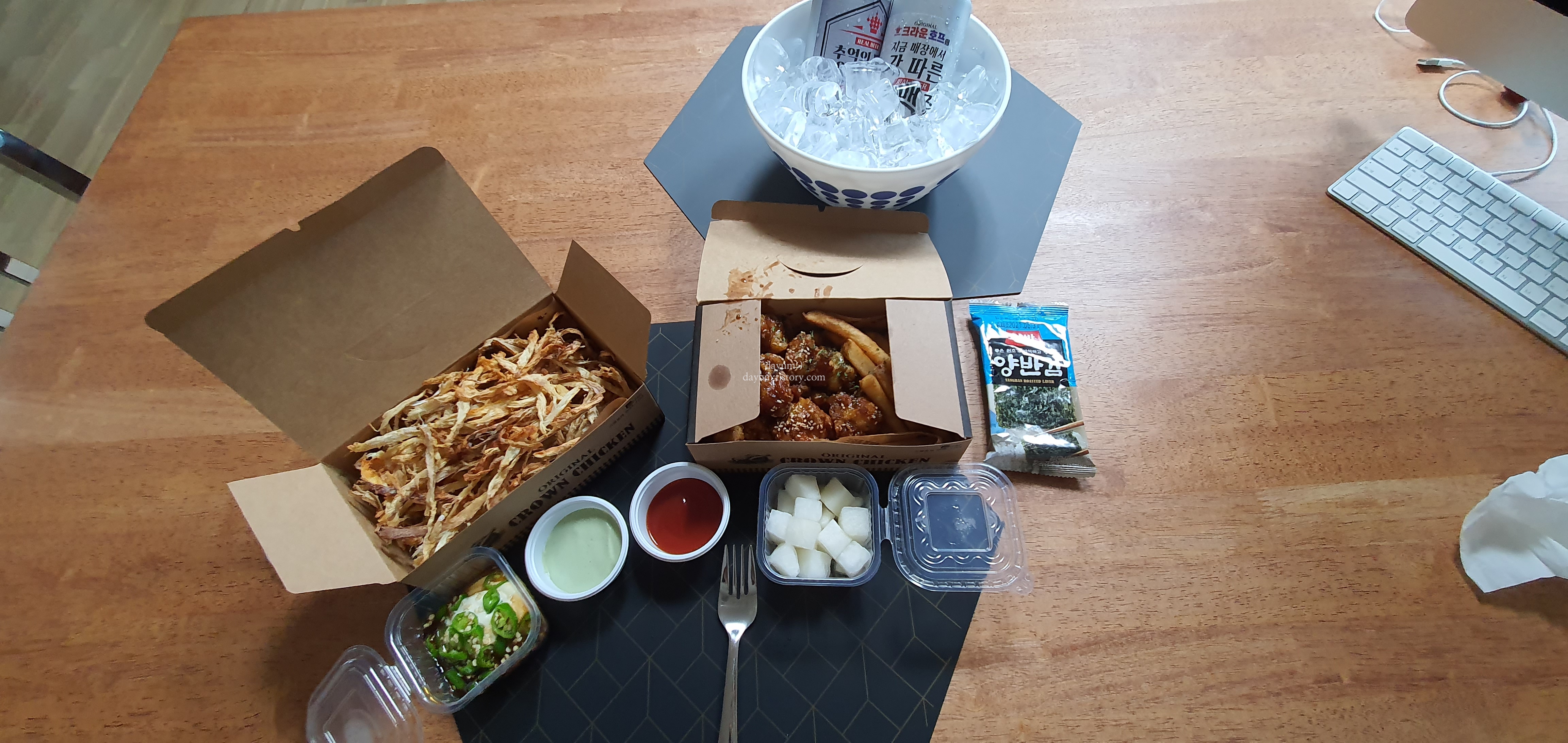 크라*호프에서 주문한 먹태와 갈비순살치킨?