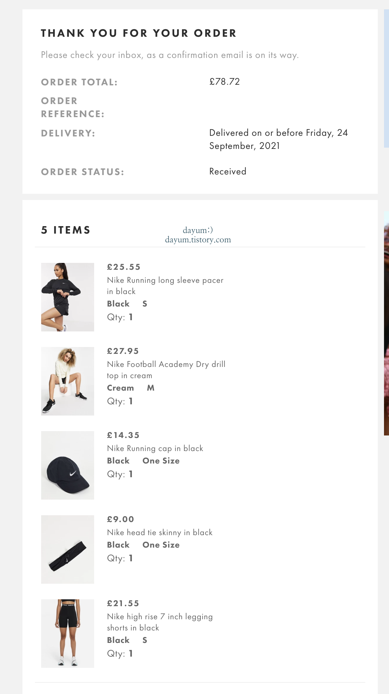 내 생일에 맞춰서 도착한건가. 도착예정은 9/24 였는데 이제야 도착했다. https://dayum.tistory.com/607 오랜만에 나이키 직구, 영국 asos 겨울을 기다리며 런닝용품을 구입했다. 배송예정일은 한달이 넘
