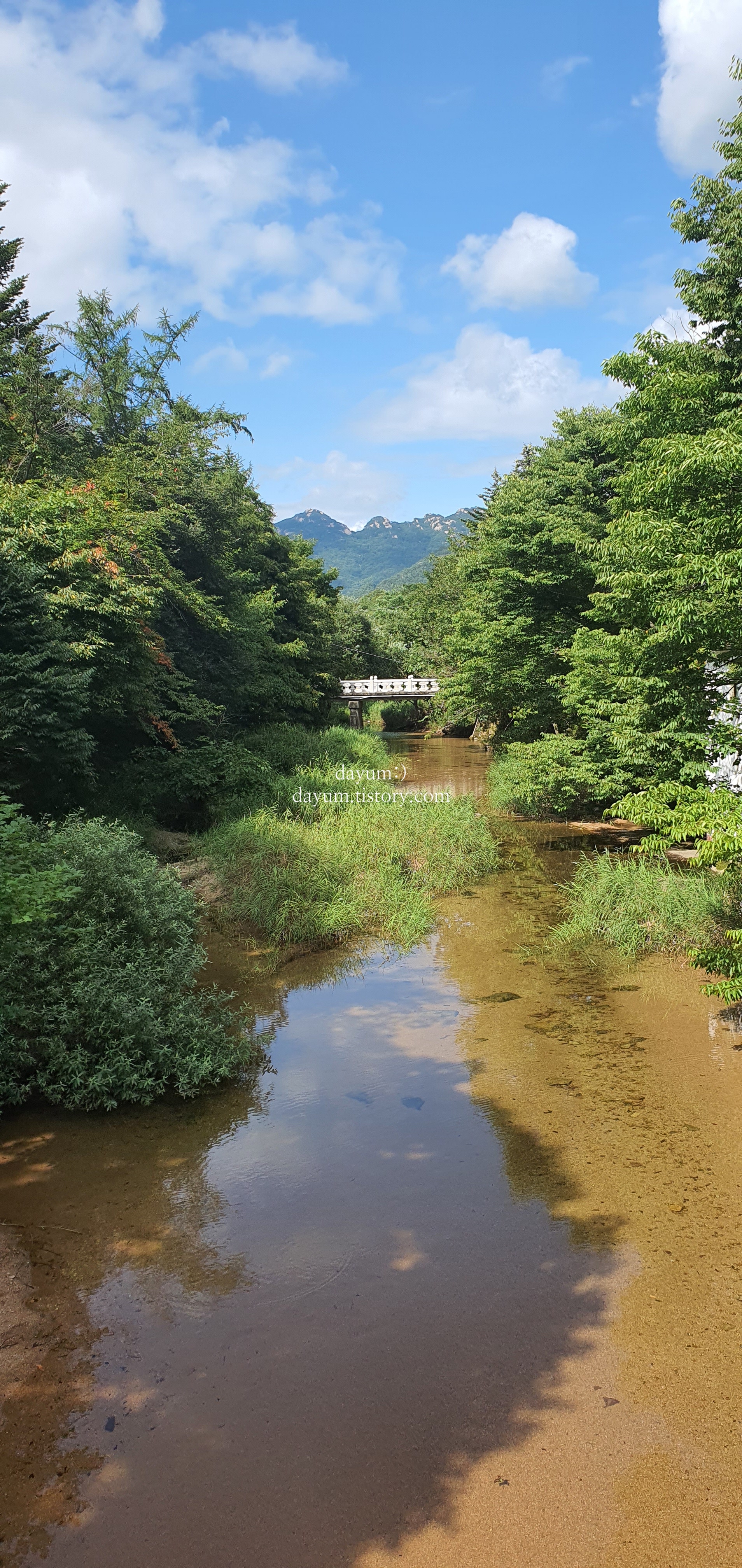 속리산터미널 건너편이 관광안내소이고, 그쪽에 주차선에 주차를 하거나 더 안쪽의 천을 따라서 들어가면 주차를 할 수 있었다.