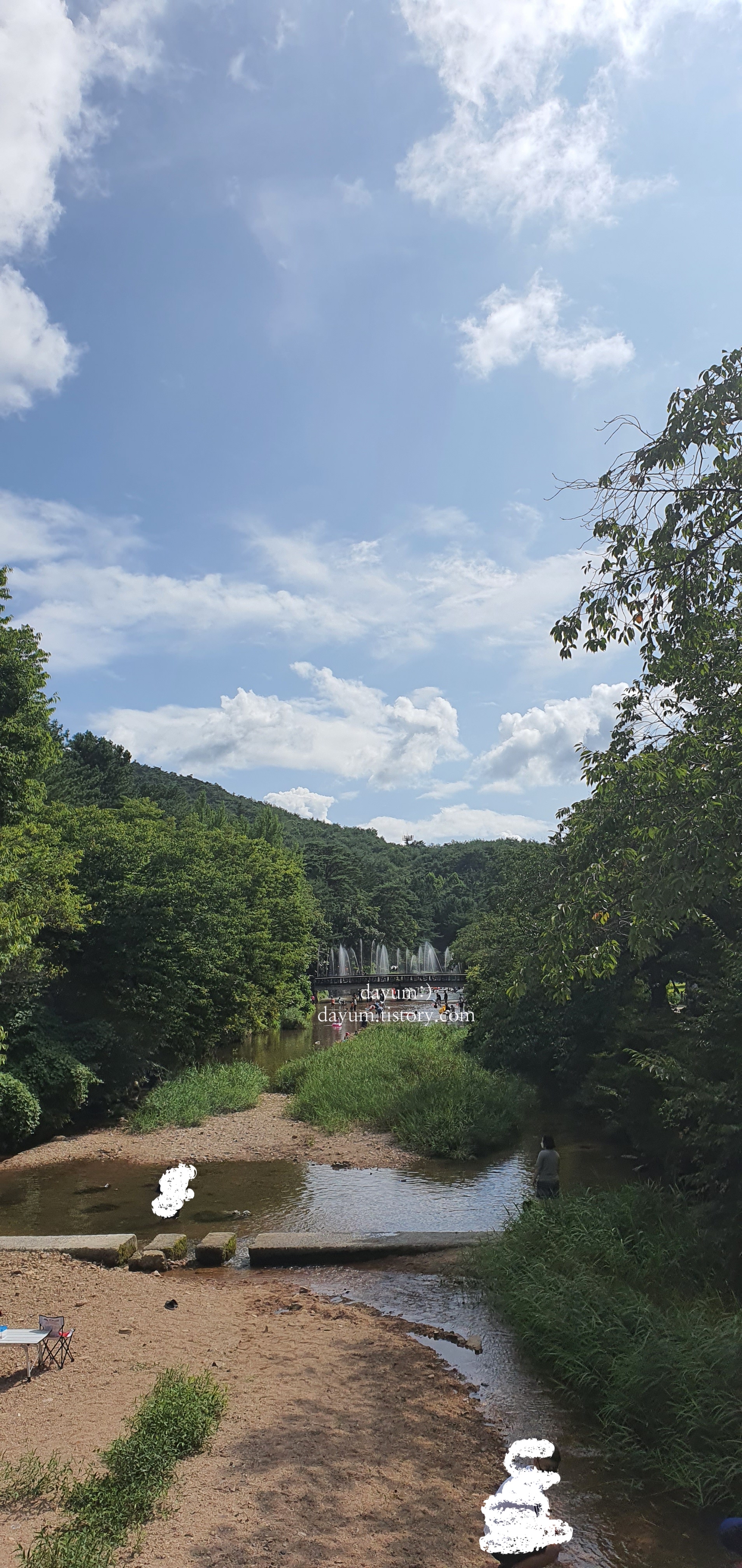 레이크힐 호텔 건너편은 조각공원이었는데 이 곳에 물이 흐르고 있어서 많은 사람들이 물놀이를 하고 있었다.