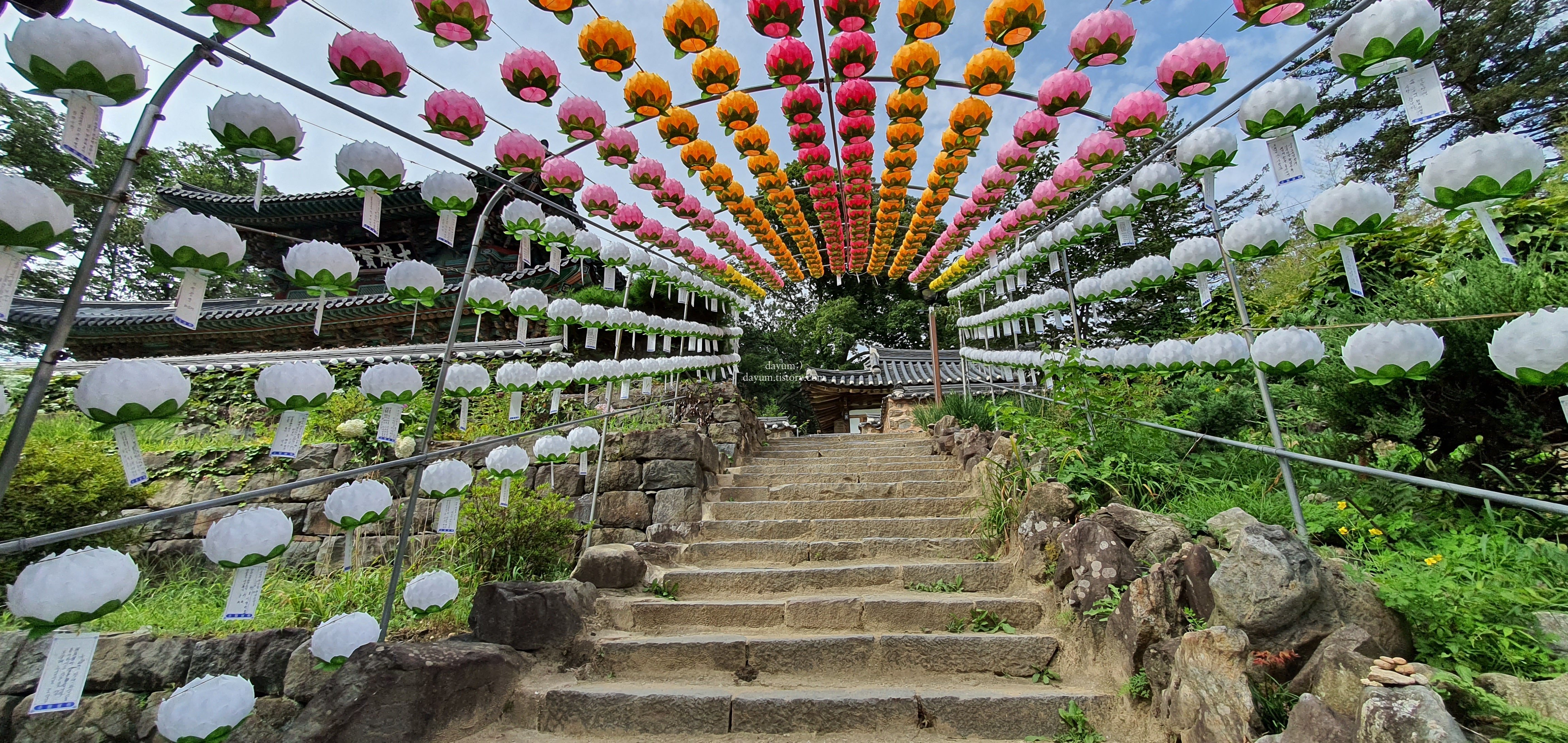 연등이 달려있는 계단을 올라가면 나온다.
