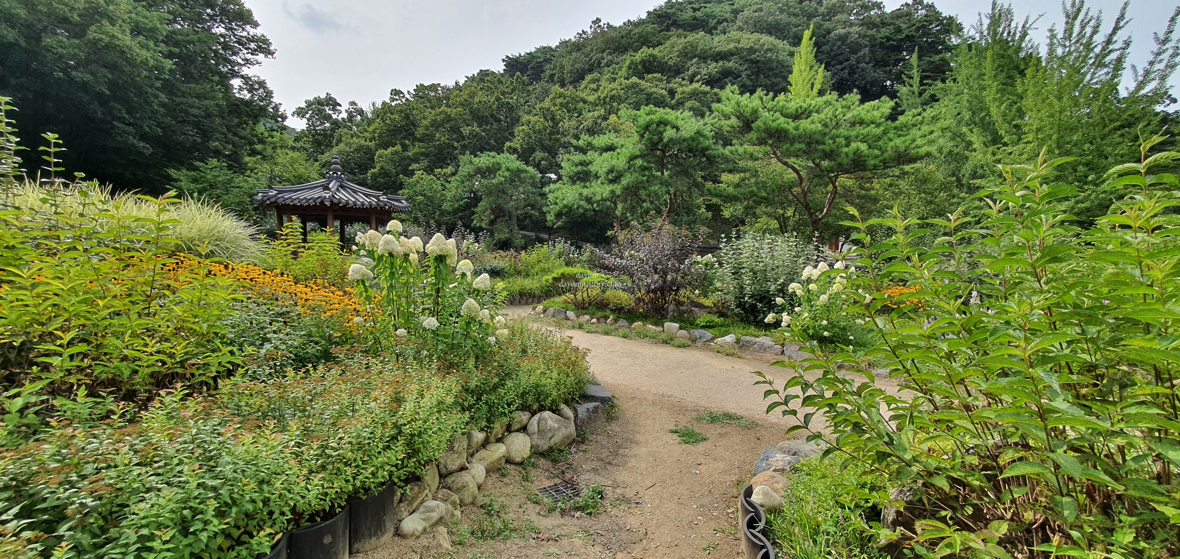 나올 때 보니 유네스코 세계유산 돌덩이 뒤에는 이렇게 정원이 있었는데 너무 예뻤다.
