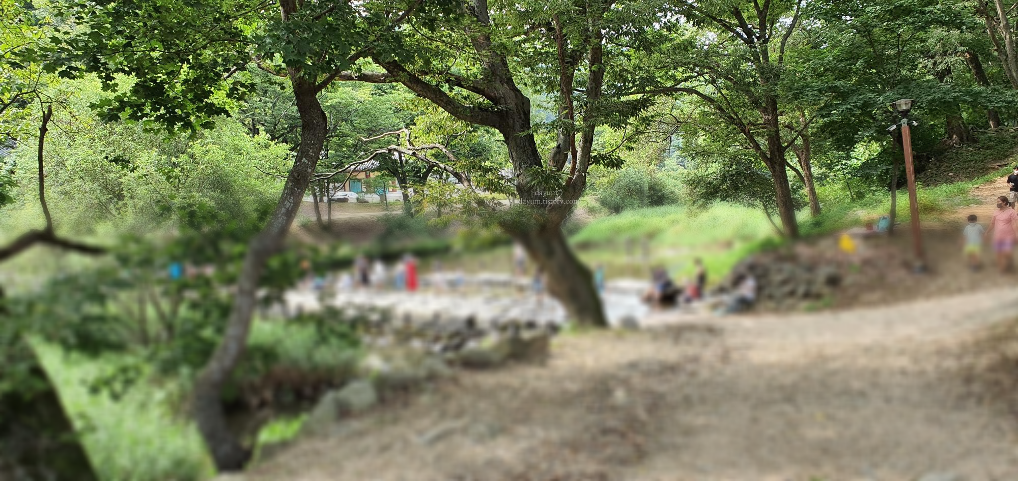 매표소 앞에는 계곡을 따라서 식당들이 있고, 사람들이 물놀이를 하고 있었다.
