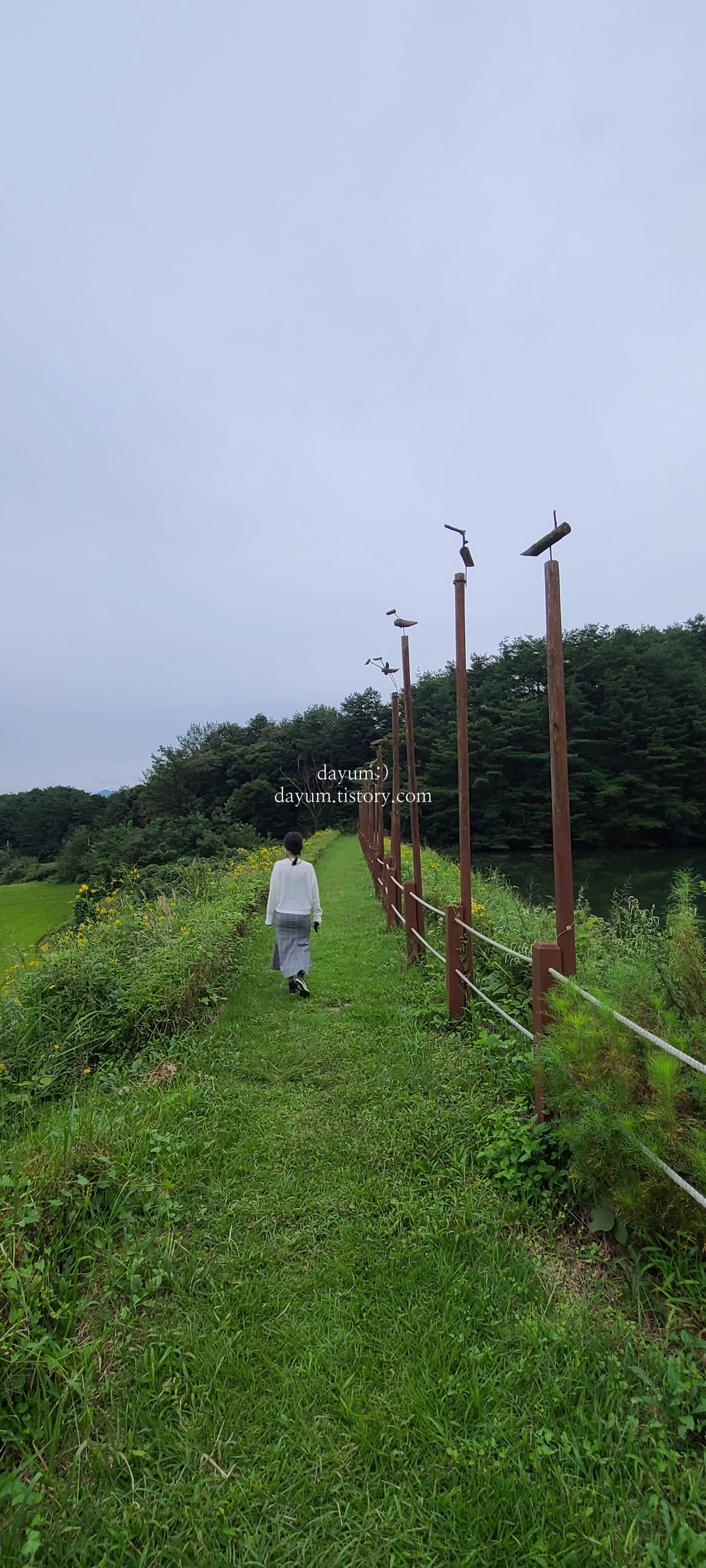 전시관 말고도 건물 주변으로 한바퀴 돌 수 있고 바로 앞에 저수지가 있어서 산책하기에 정말 좋았다.