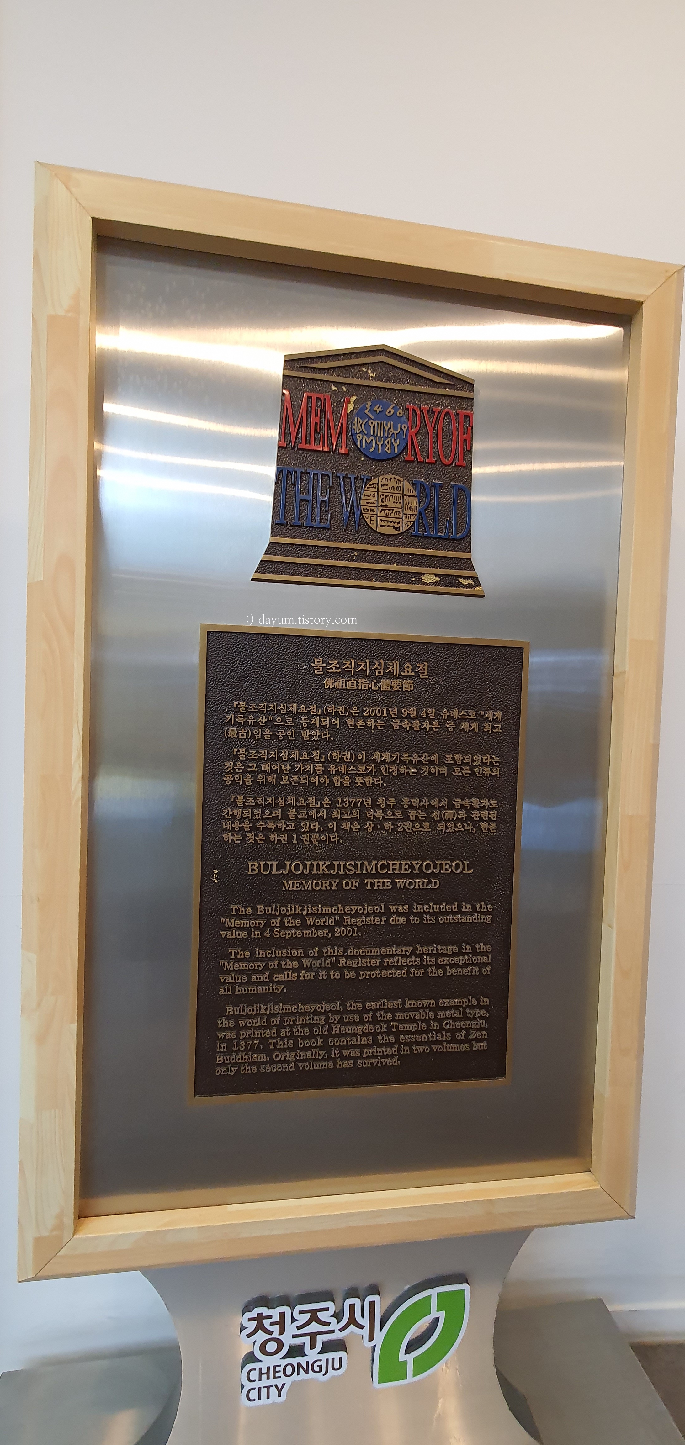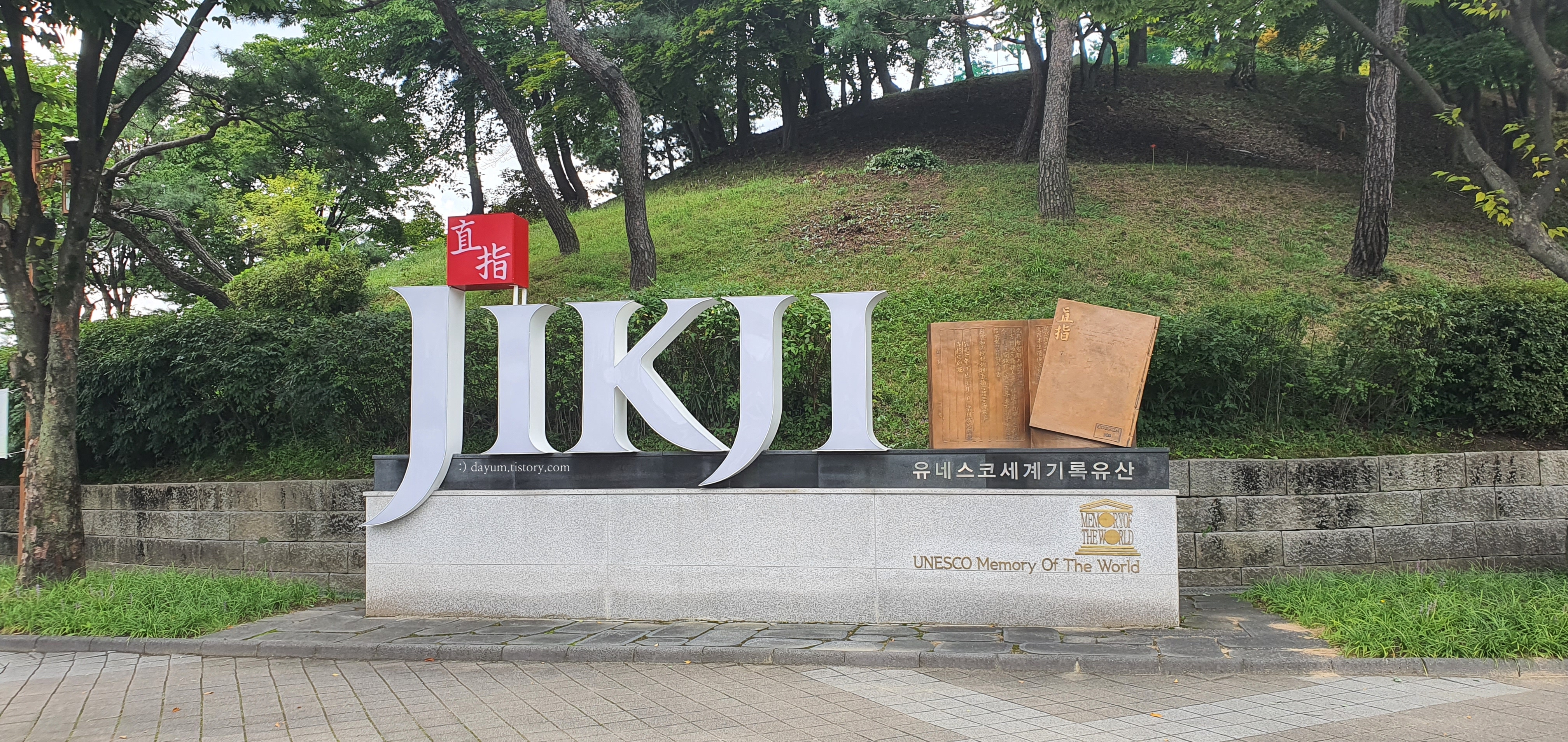 주차장에서 입구 쪽으로 가면 이렇게 유네스코세계기록유산이 적힌 엄청큰 JIKJI가 있다.