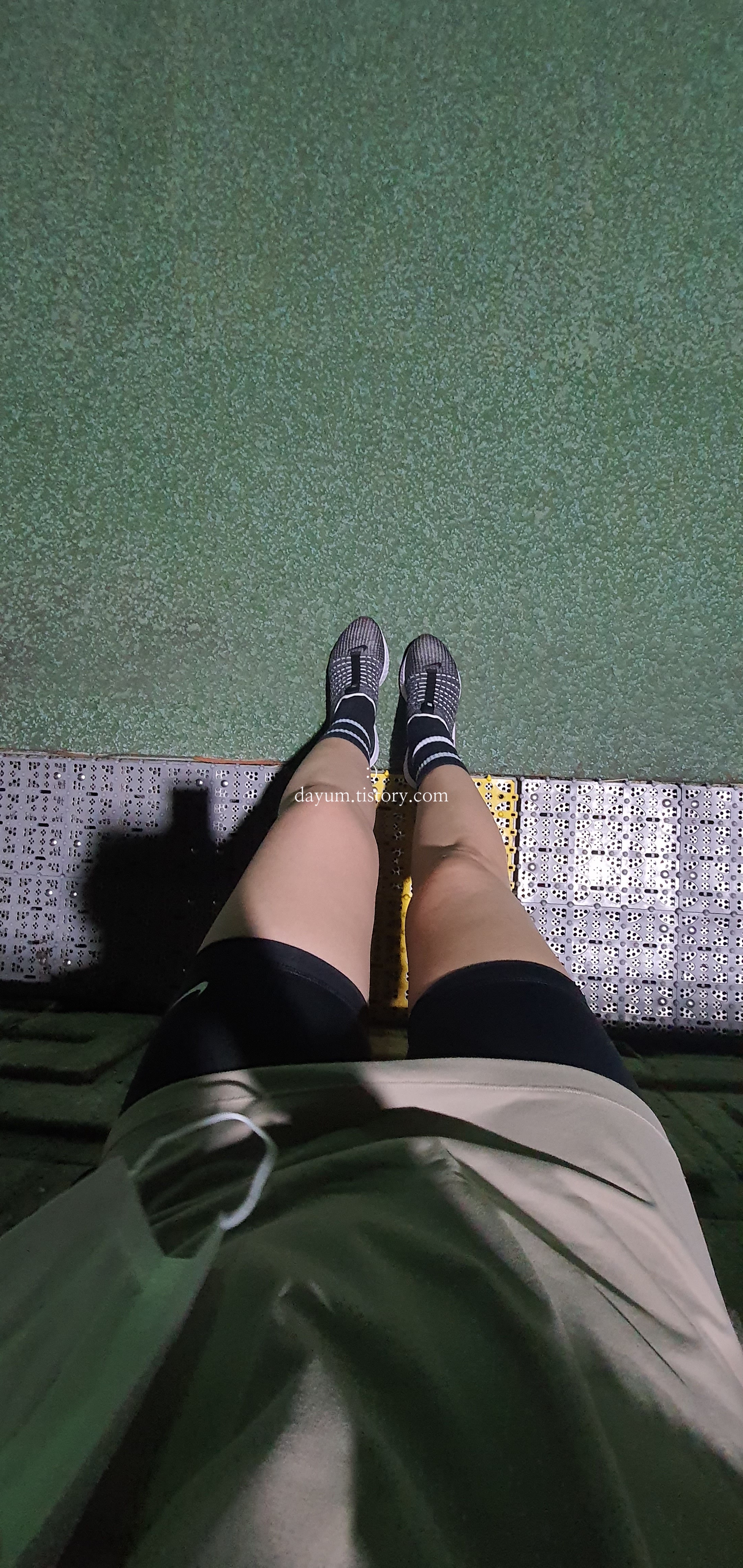 달리고 나니까 조금 올라갔는데 신경쓰일 정도는 아니다. 허벅지에 살이 많아서 말려올라갈까봐 걱정했는데 다행이다.