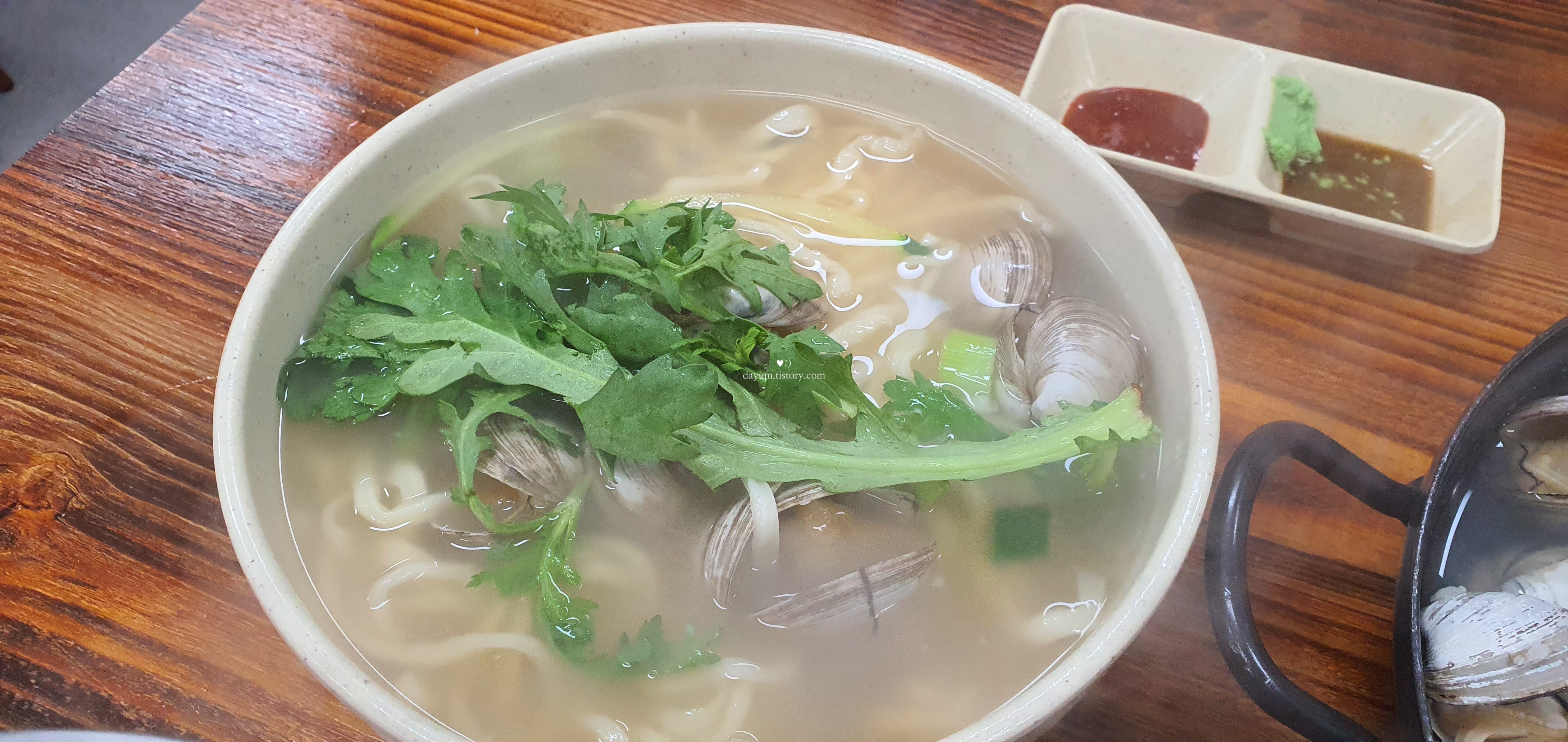 쑥갓 향이 정말 좋았고 조개도 엄청 싱싱하고 면은 쉽게 불지 않았다.