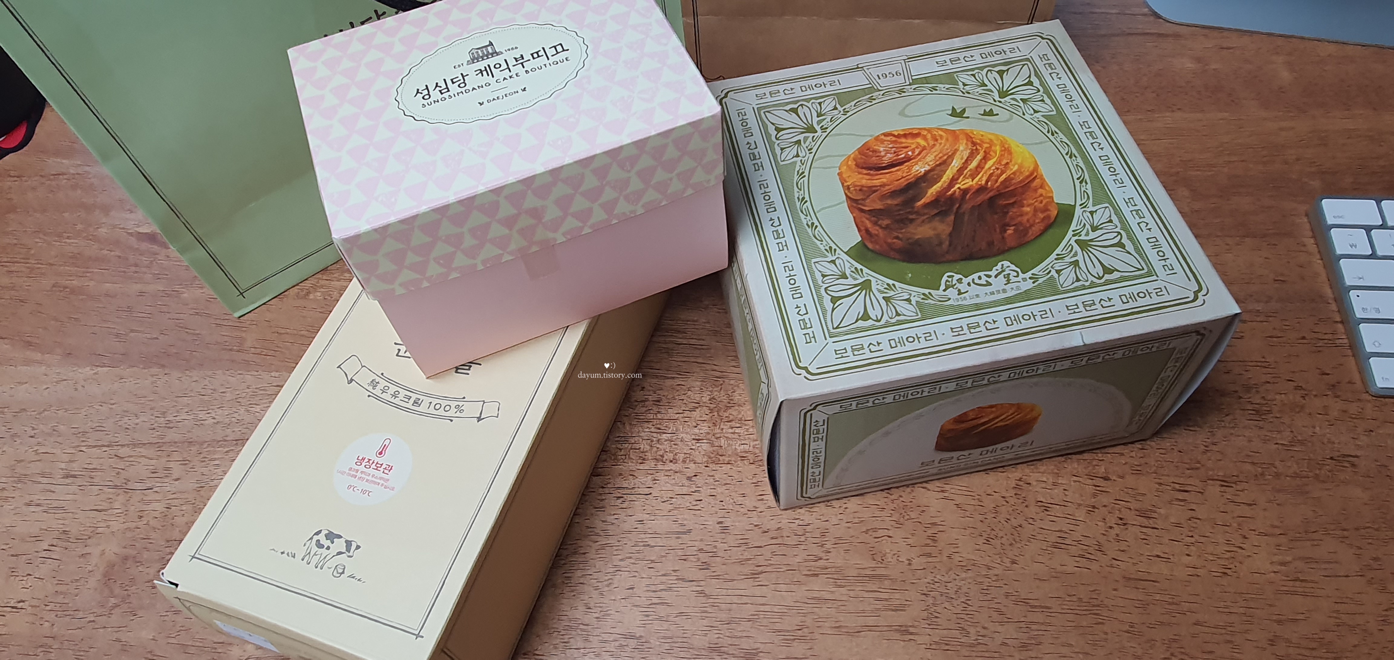 맛보고나서는 꽤나 만족했다. 롤케이크는 부드럽고 달지 않아서 내 입맛에 딱이었고 크레페케이크는 아는 맛이었지만 부드럽고 달콤하다. 보문산 메아리도 아는 맛이었지만 역시 만들어진지 얼마 되지 않아 폭신한 느낌이 좋았다. 남편은 다 맛있다고 했다.