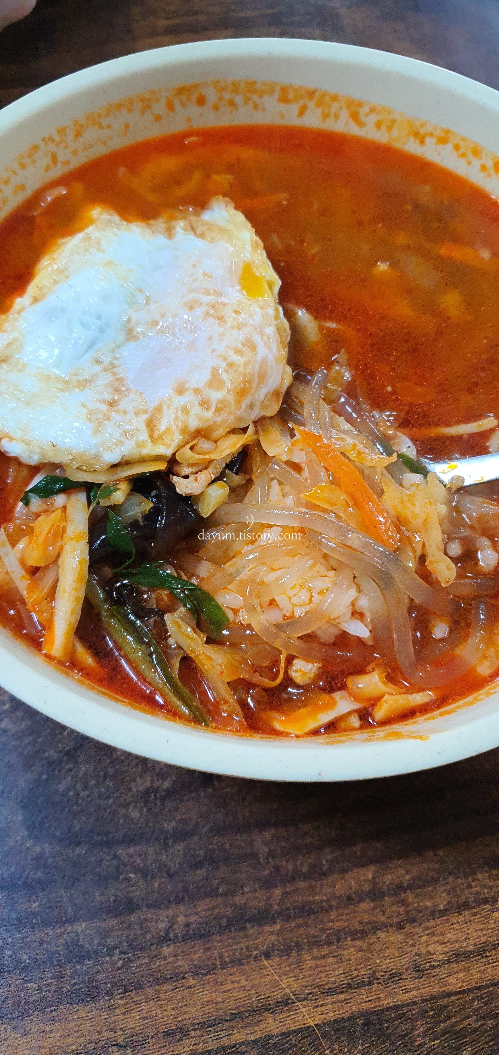 양이 적은가 싶었는데 2인이 먹기에 알맞았고 짬뽕밥의 당면의 양은 많지 않고 밥이 더 많이 들어있다. 난 좋았음.