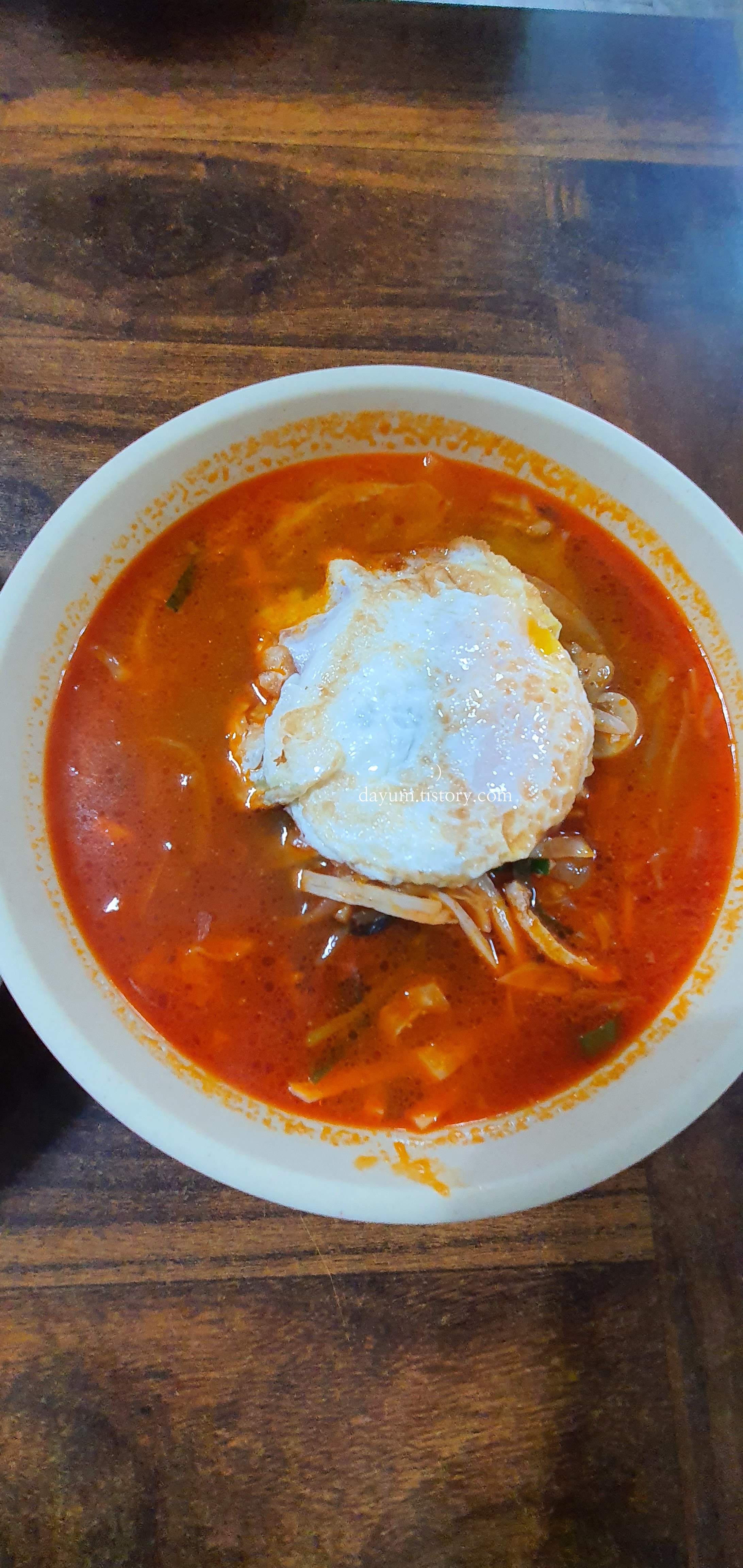 짬뽕밥에는 당면과 밥이 말아져 나오는데 독특하게 계란후라이가 올라가있다. 맵지 않은 국물이 중독성 있다.