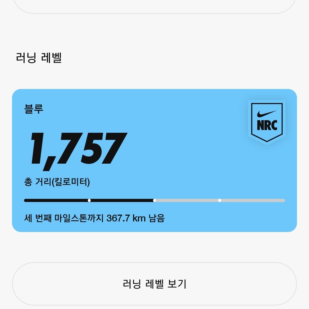 눈소식 있어서 뛰고 왔는데 블루레벨 반을 지났다.