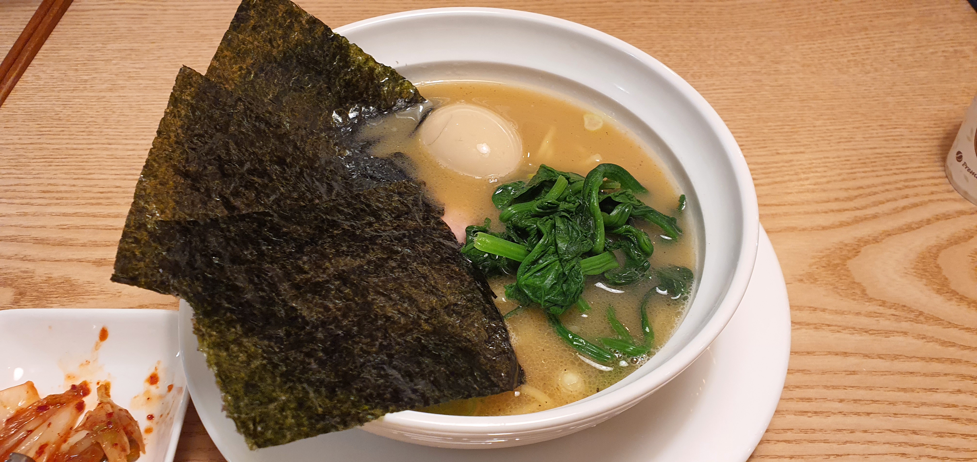 이에케 라멘에는 시금치가 고명으로 있는데 어울리는 듯 안어울리는 듯 긴가민가.