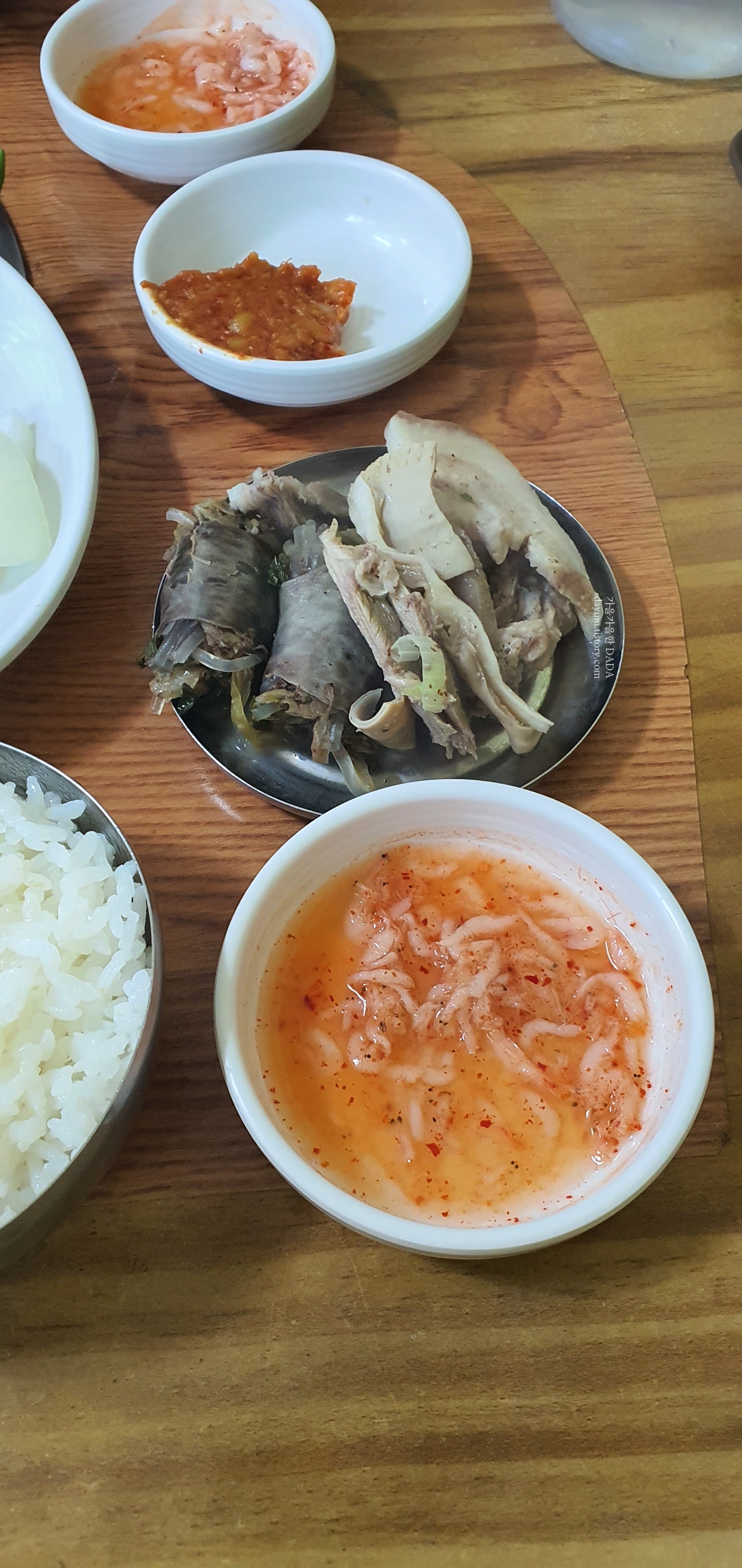 남편은 다대기를 넣고 먹었는데 내 취향은 그냥 하얀국물이 나았다.