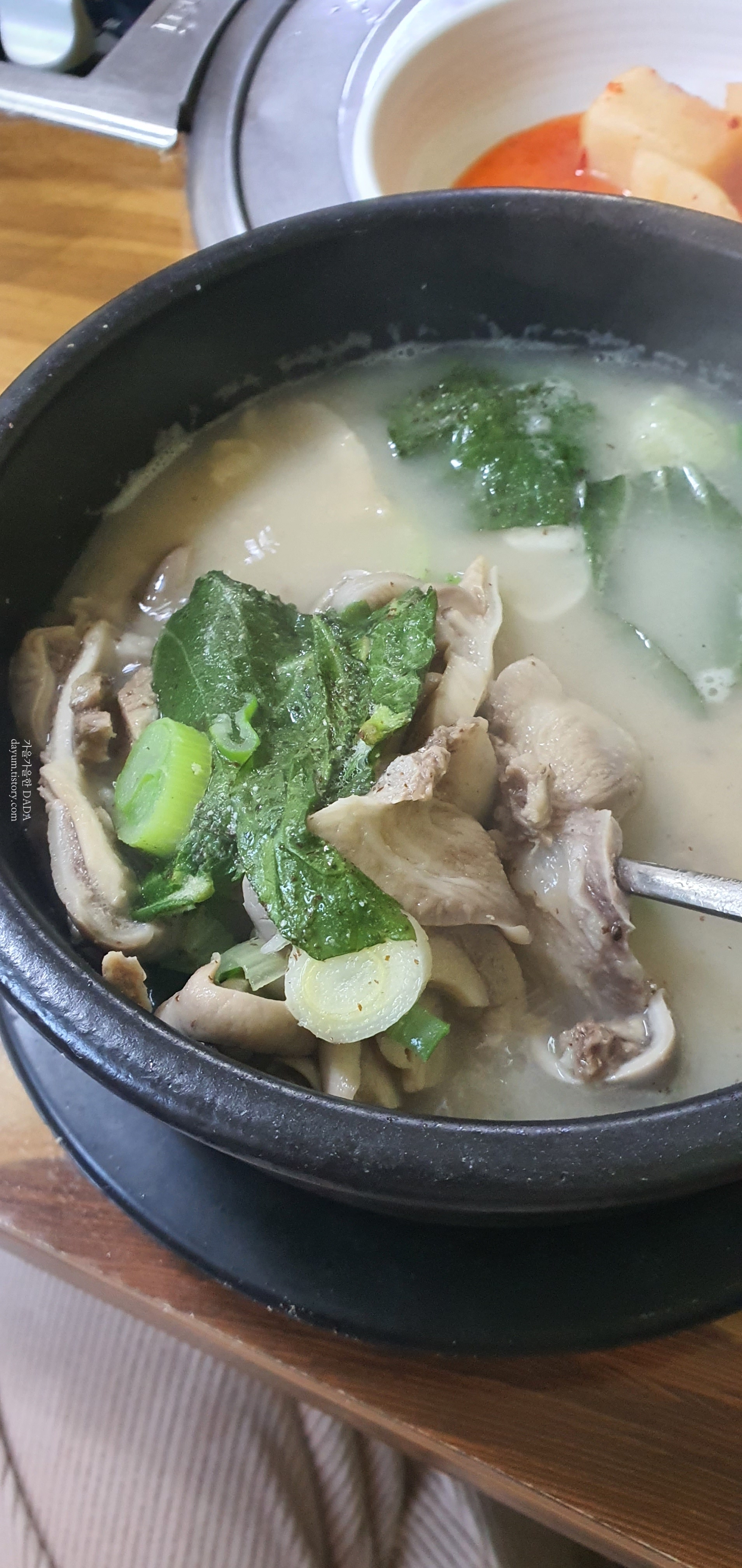 넘 뜨거워서 건더기는 계속 건져서 식혀서 먹고 국물에는 후추와 들깨가루를 듬뿍 넣어서 먹었다.