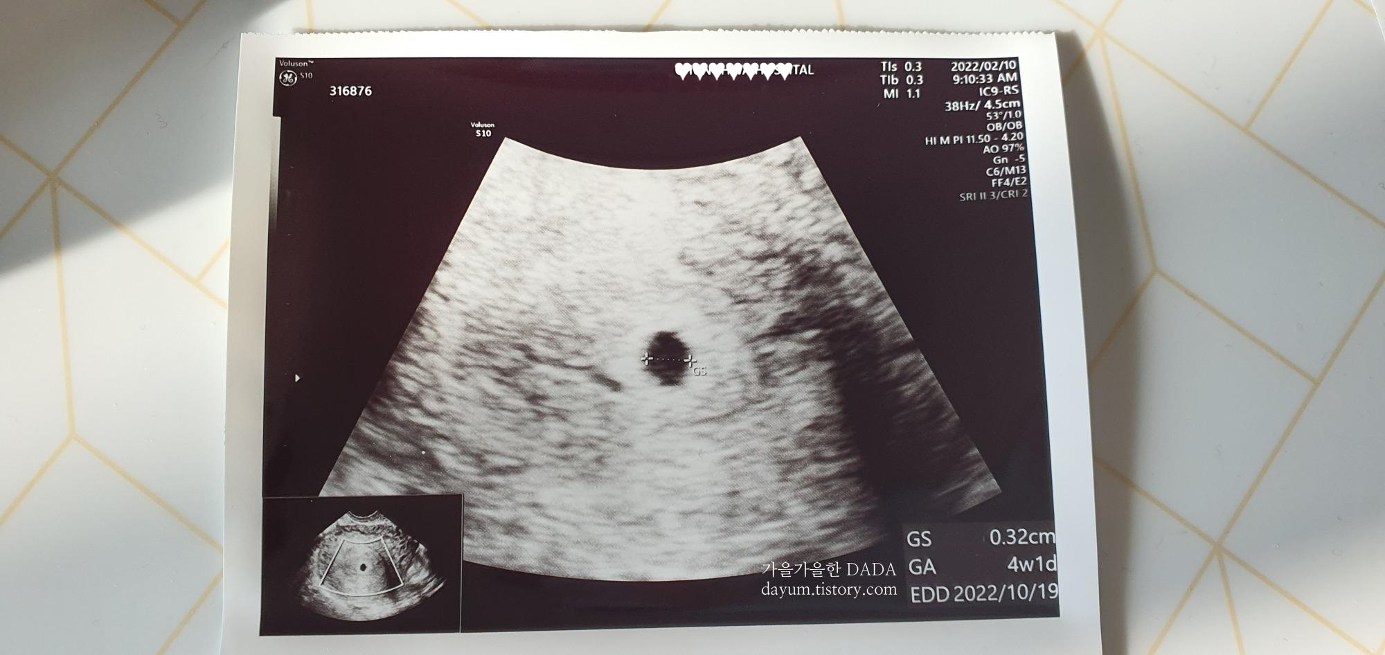 배란이 늦게 된건지 네이버 주수계산기에서는 5주차가 넘었었지만 병원에서 초음파로 봤을때는 4주1일이라고 한다.