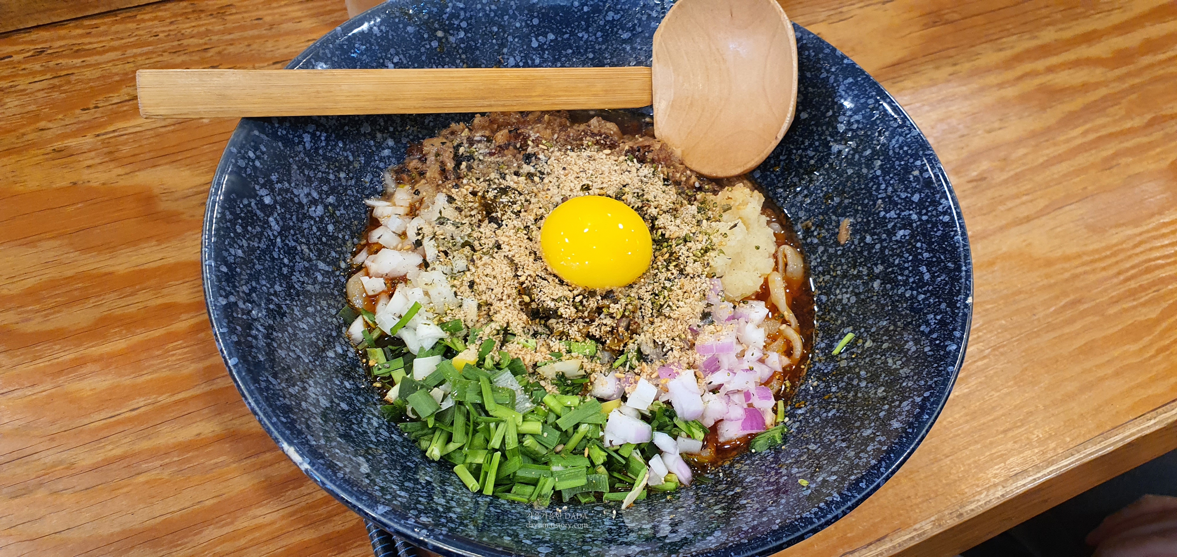 마제멘이 먼저 나왔고, 잘 비벼서 먹다가 중간에 다시마식초를 뿌려서 먹으면 더 색다르게 즐길 수 있다.
