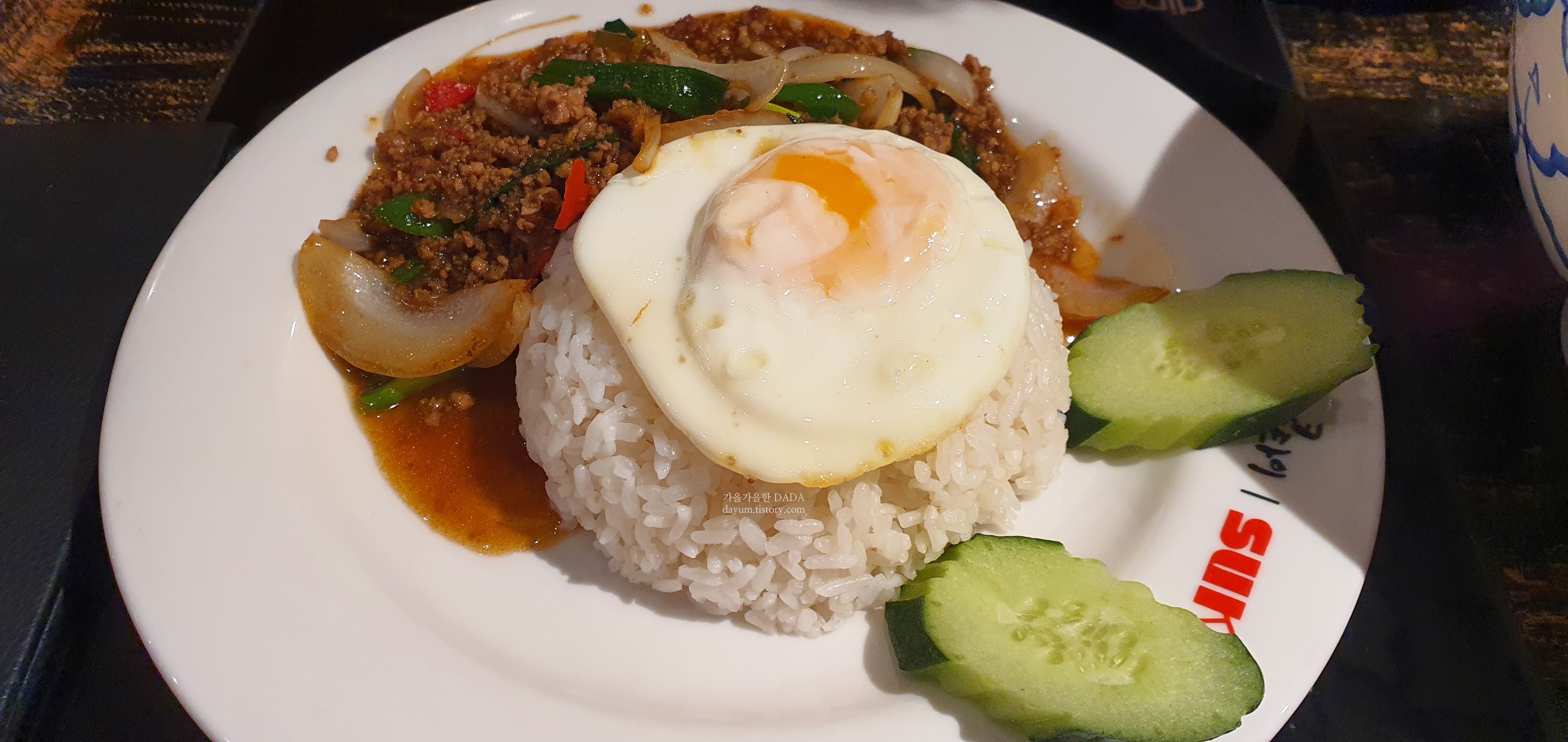 늘 먹던 돼지고기덮밥과 똠얌쌀국수를 주문했다.