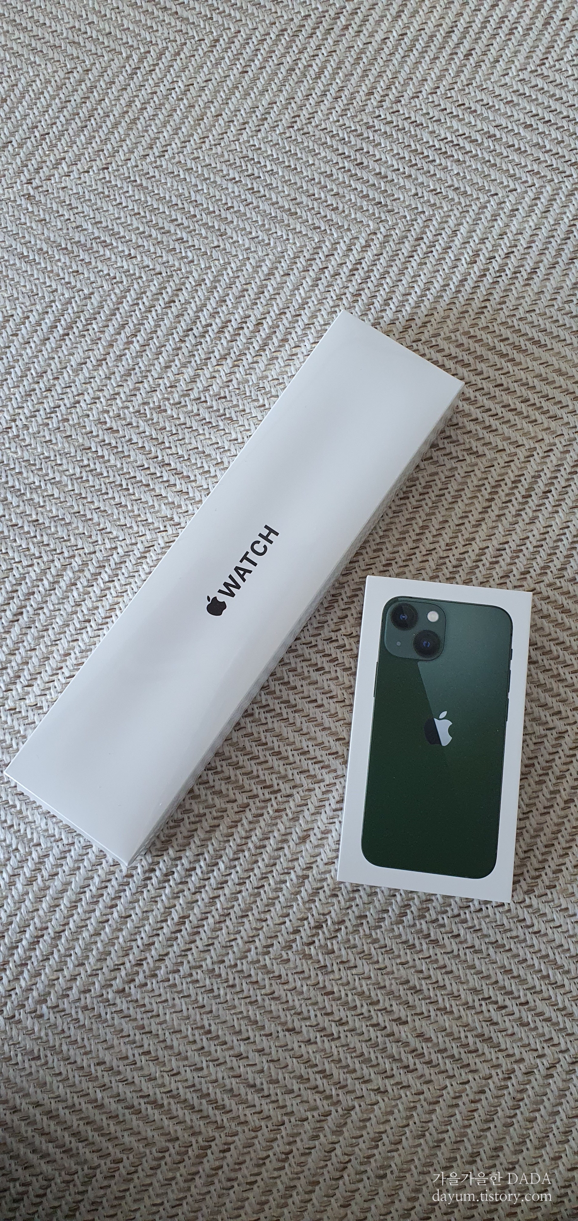 아이폰 13 미니는 얼마전에 나온 그린색상의 256기가로 구입했고, 워치는 실버에 블루 스트랩 색상으로 구입했다.