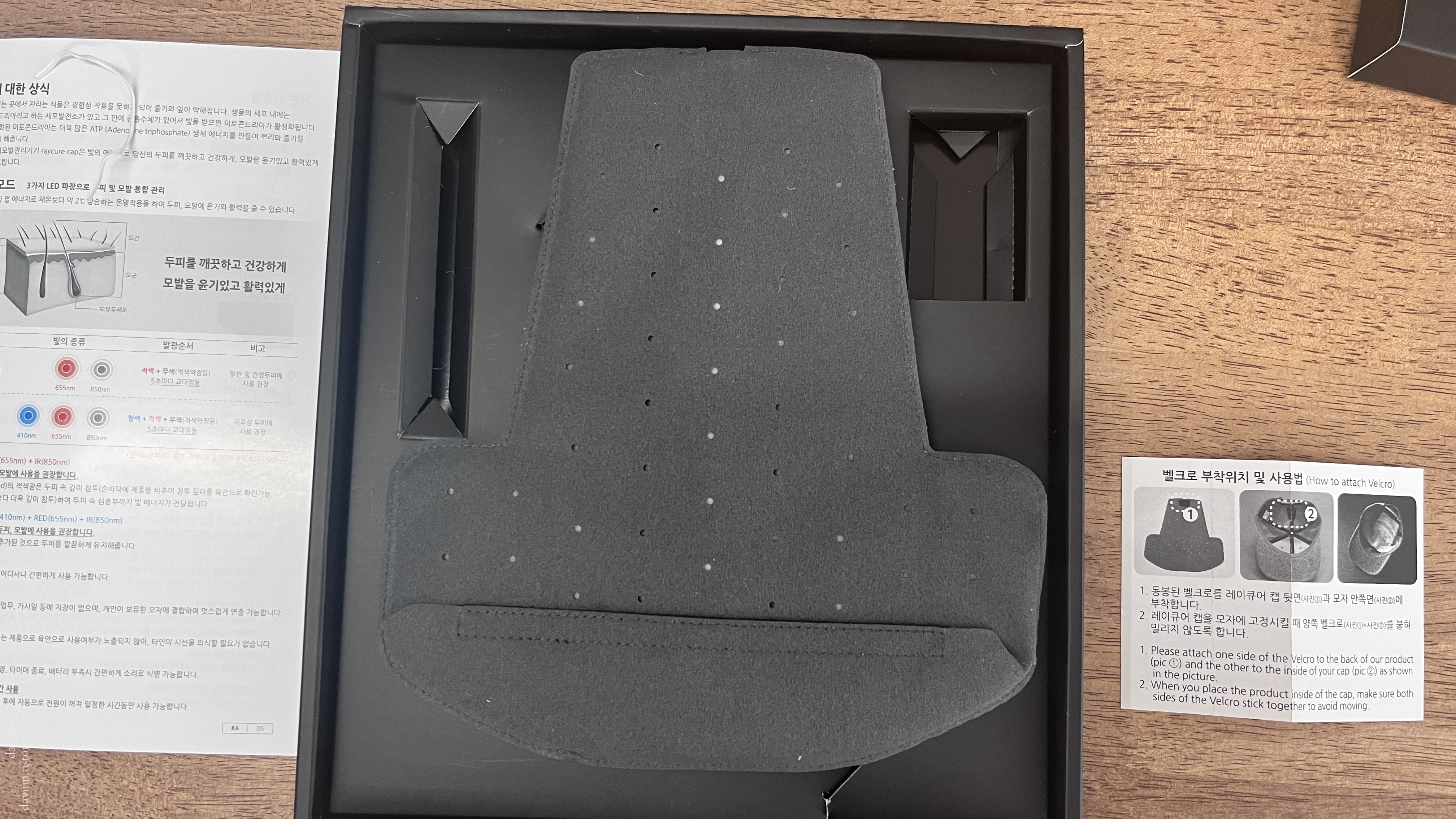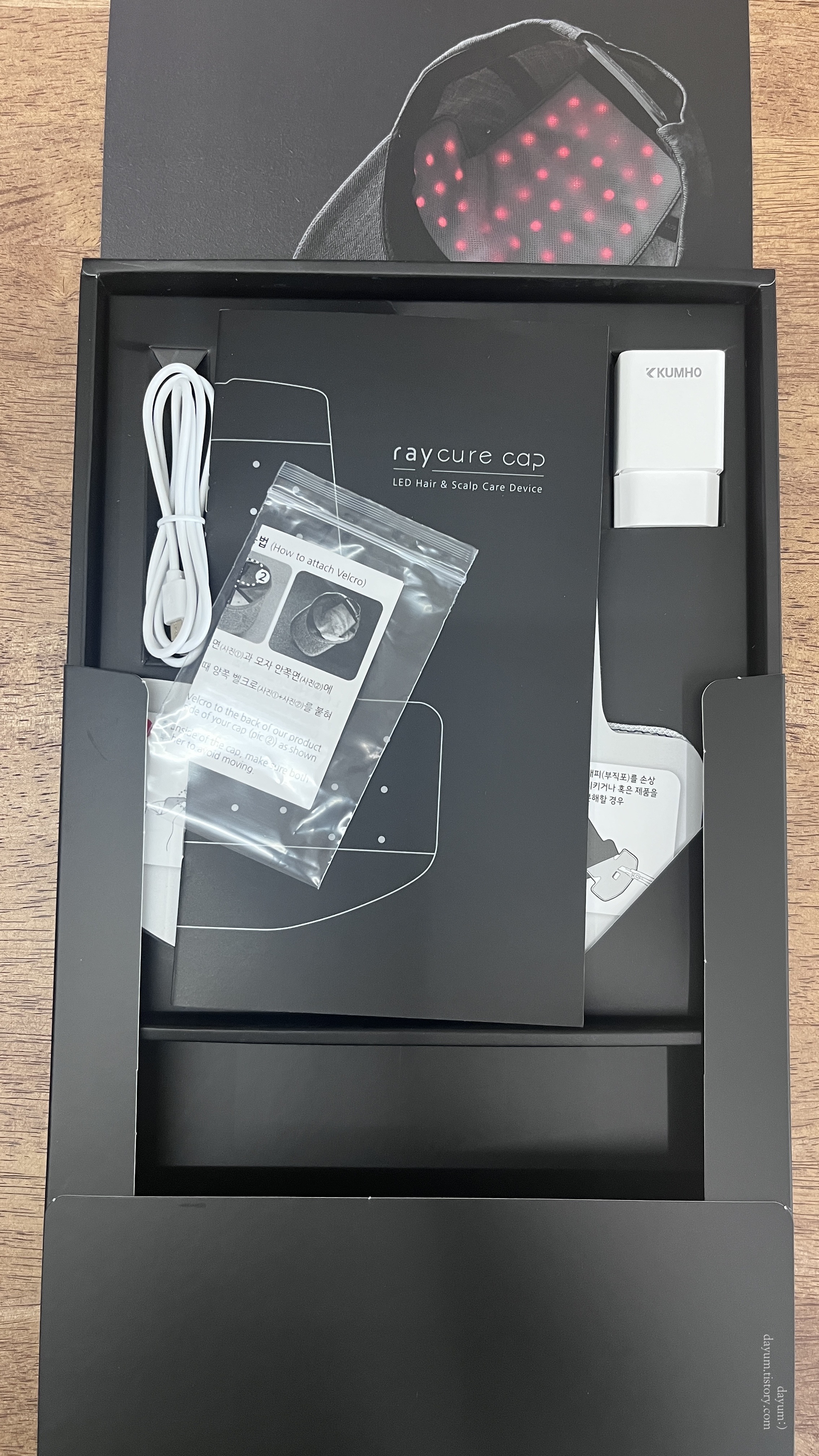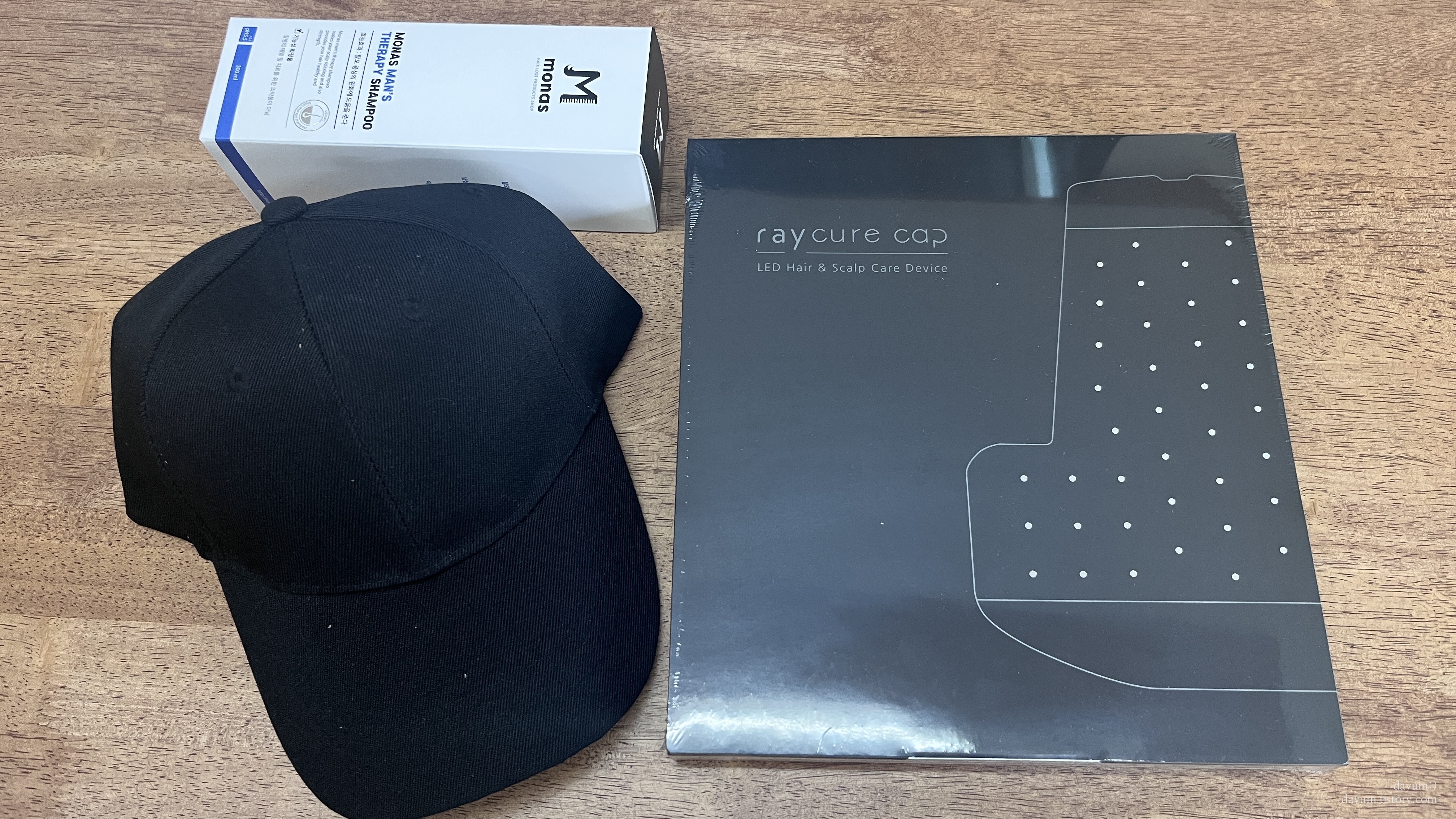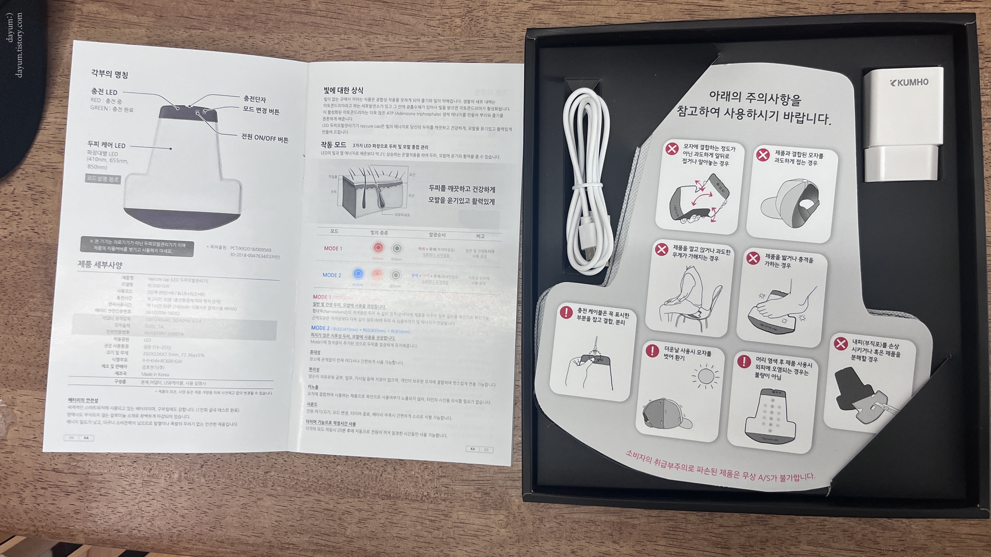 배송은 이틀만에 왔고 본체와 본체를 넣어서 사용할 모자, 탈모 샴푸가 들어있었다.