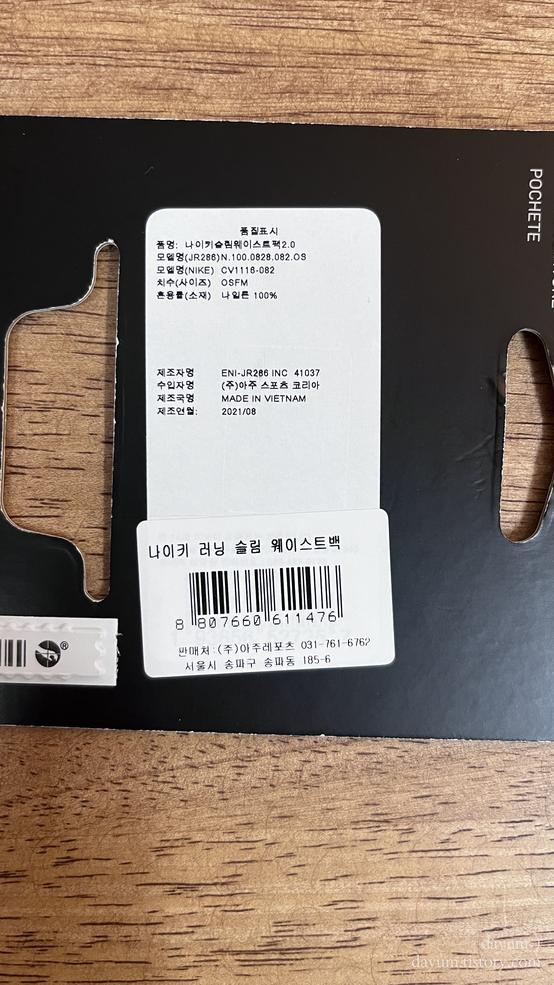 남편이 사용 할 런닝벨트가 도착했다. 나이키 제품이고, 내가 사용하던 CV1116-082와 디자인이 아주 유사하다. 2만원대에 구입했고 이틀만에 도착했다. https://dayum.tistory.com/536 나이키 360 그래픽 슬