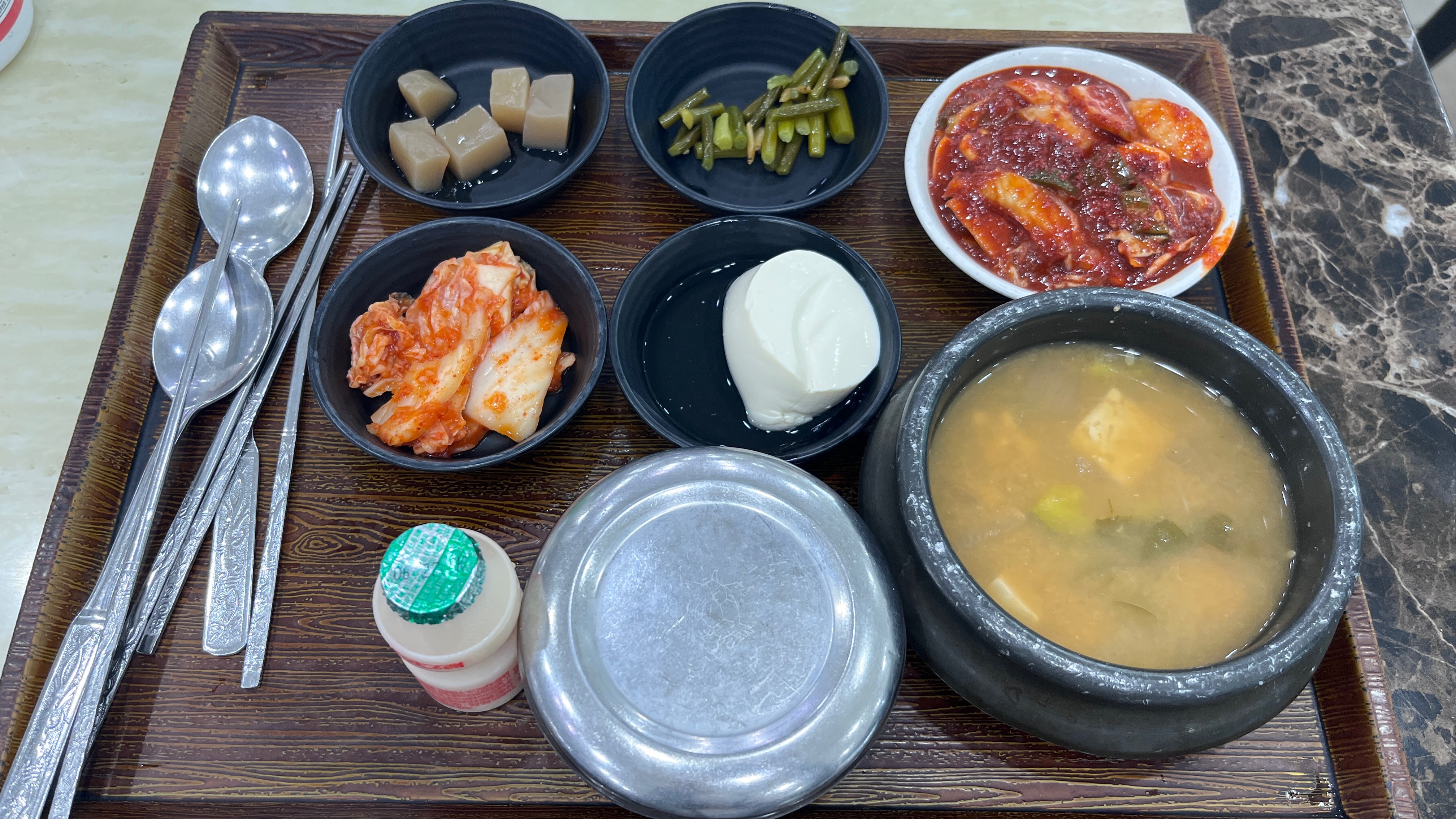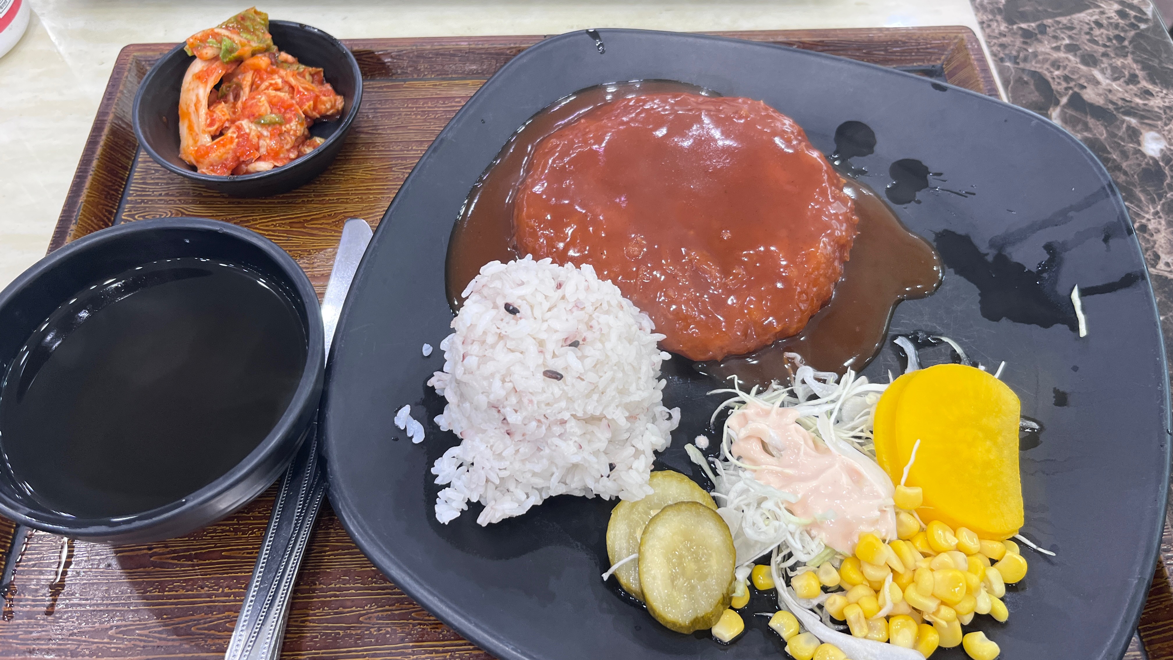 어리굴젓백반과 치즈 돈가스를 주문했고 매콤함과 고소함이 공존하는 메뉴였다. 느끼할쯤 어리굴젓 얹은 밥 한숟가락 한입, 매울쯤에 치즈돈가스 한조각