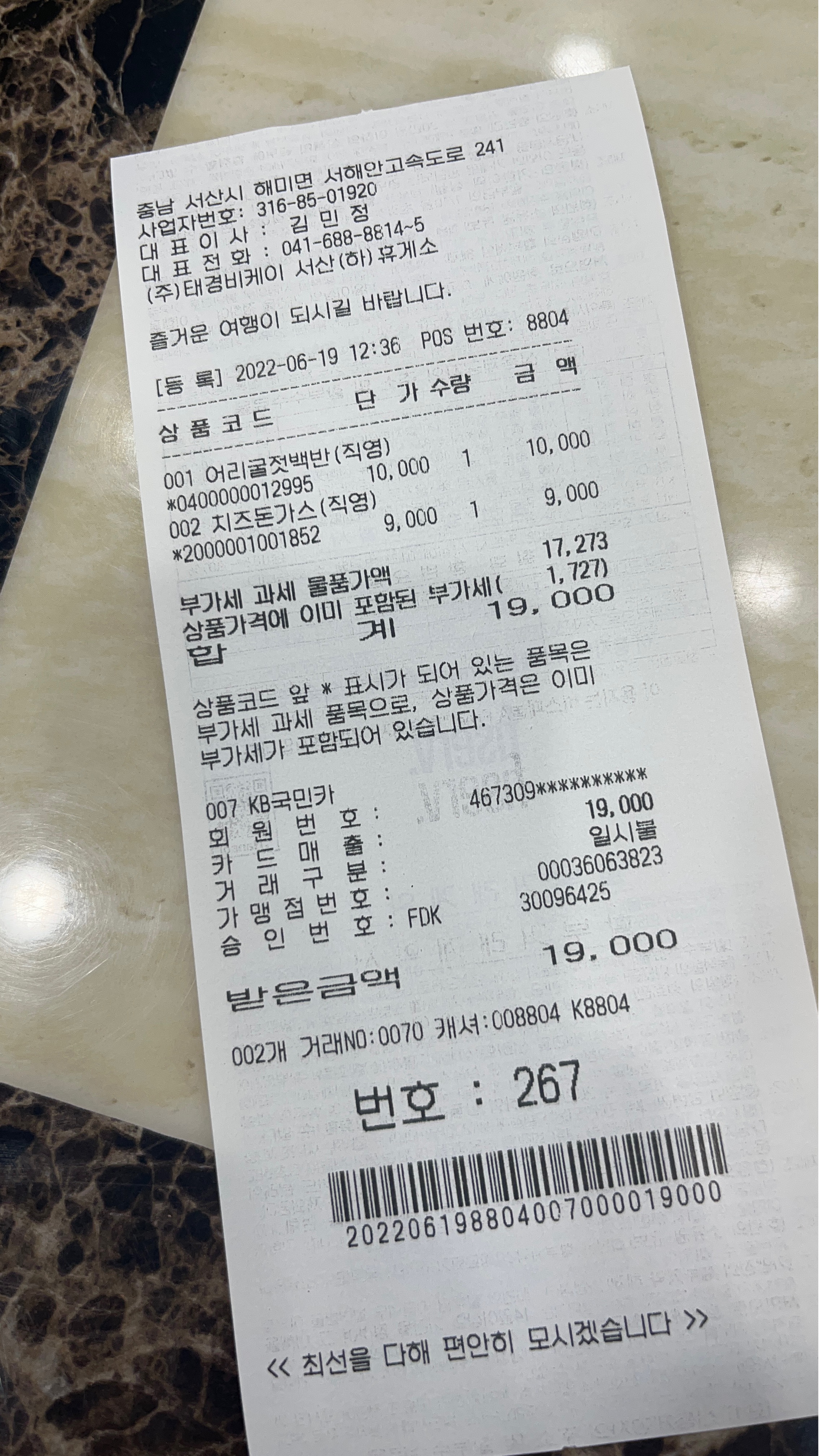 독산동에서 막혀서 멘붕.. 한시간 넘게 달려서 서산휴게소에서 점심을 먹기로 했다. 행담도휴게소를 갈지 고민하다가 어리굴젓백반이 그렇게 맛있다길래 서산휴게소로 갔다.