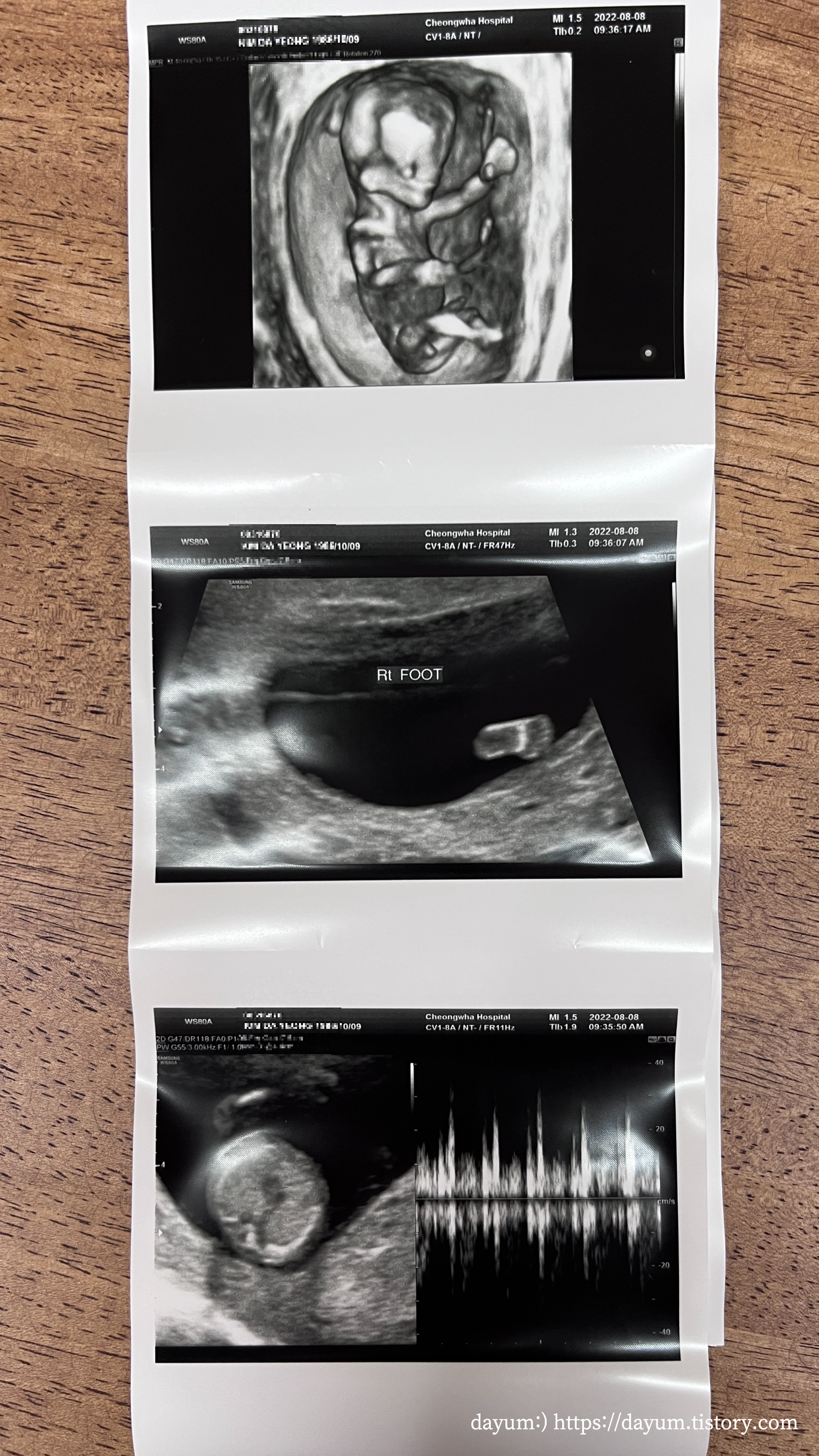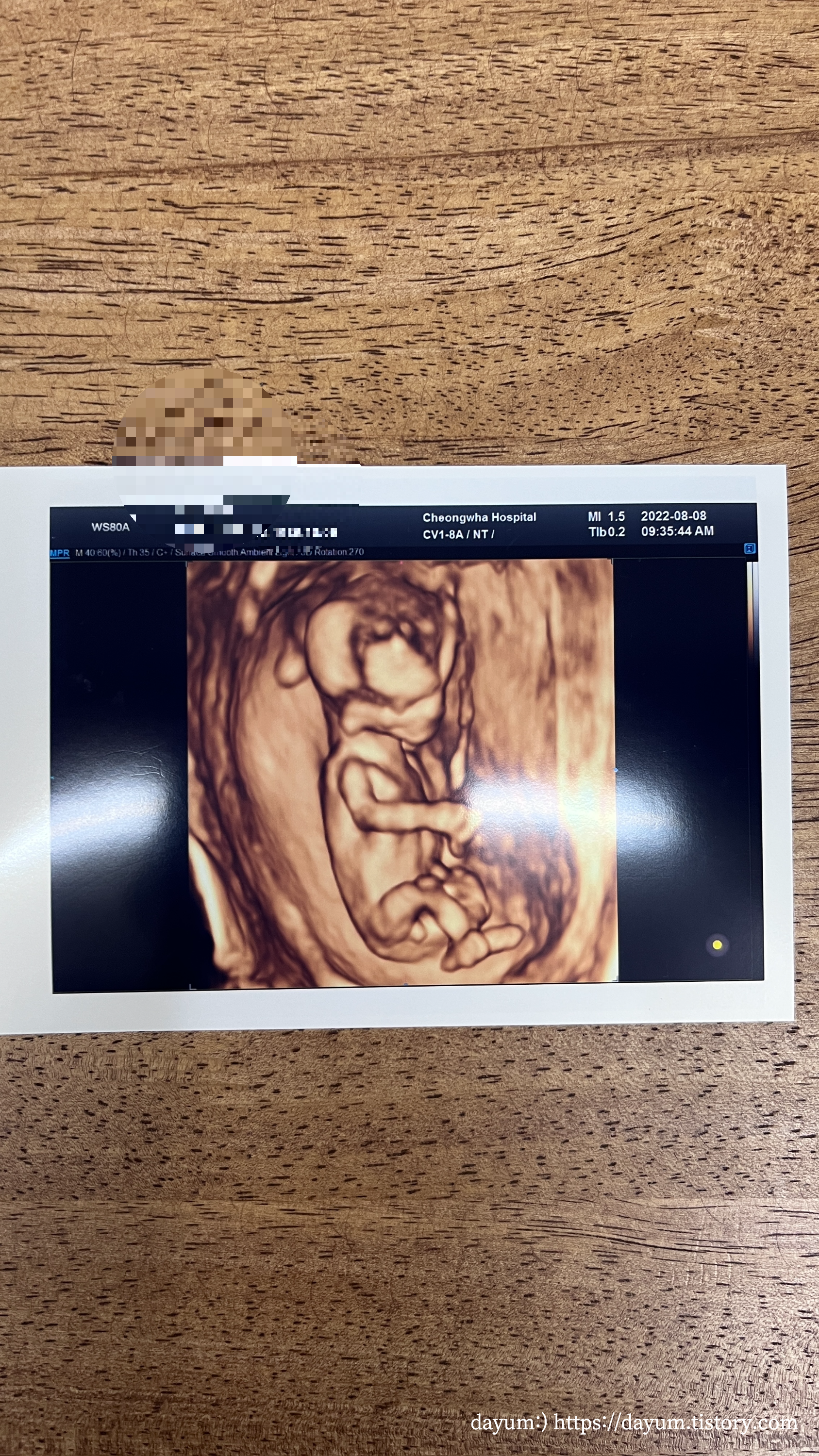 진료실에는 남편 출입불가였는데 입체초음파실에는 같이 봐도 된다고 하셔서 같이 봤다.