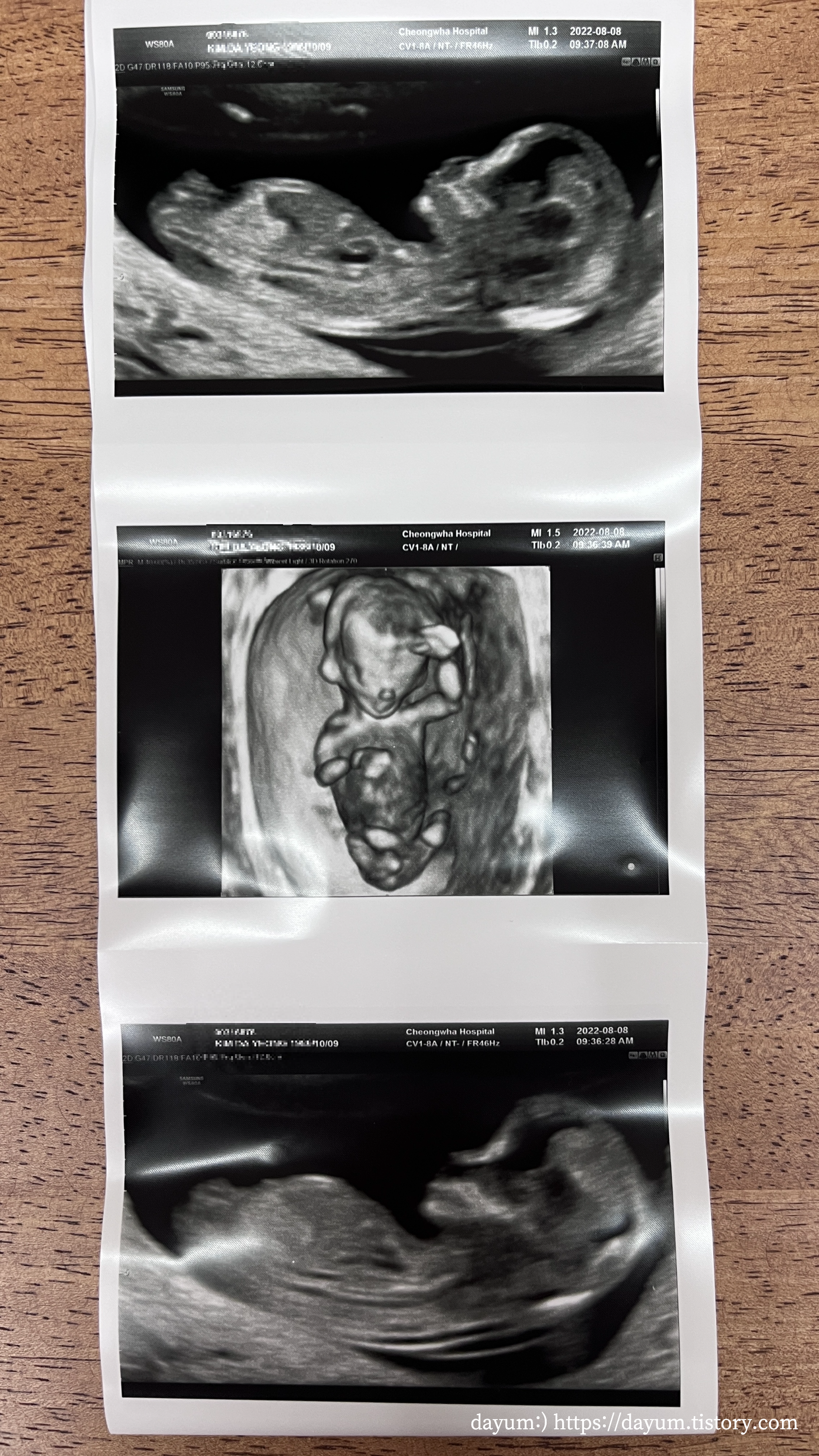 우리 부부는 처음부터 니프티를 하기로 마음을 먹었기 때문에 입체초음파를 보고 목투명대검사를 했다.