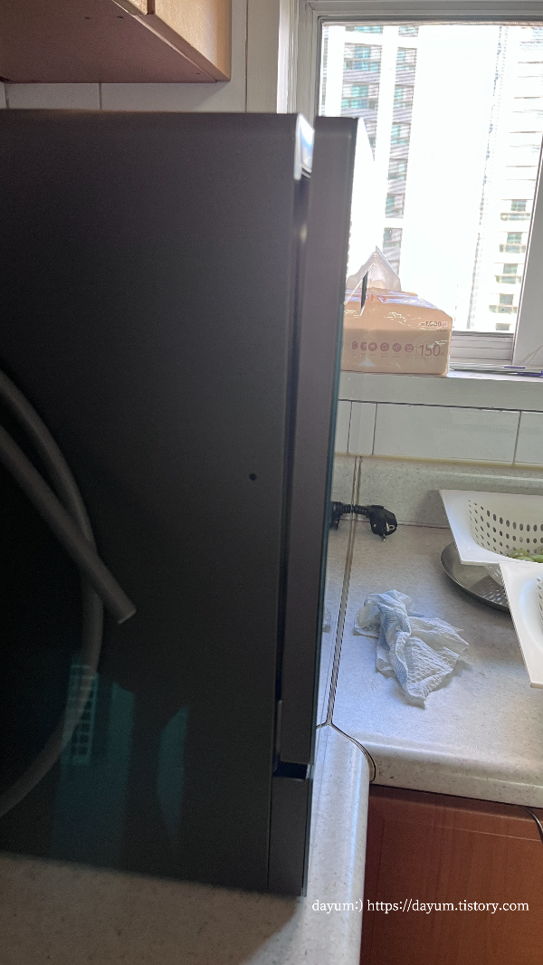 원래 있던 밥솥은 맞은편 선반으로 보내고 식세기를 두었다. 여기에 일단 두고 사용하다가 정 안되면 베란다로 빼기로 했다.
