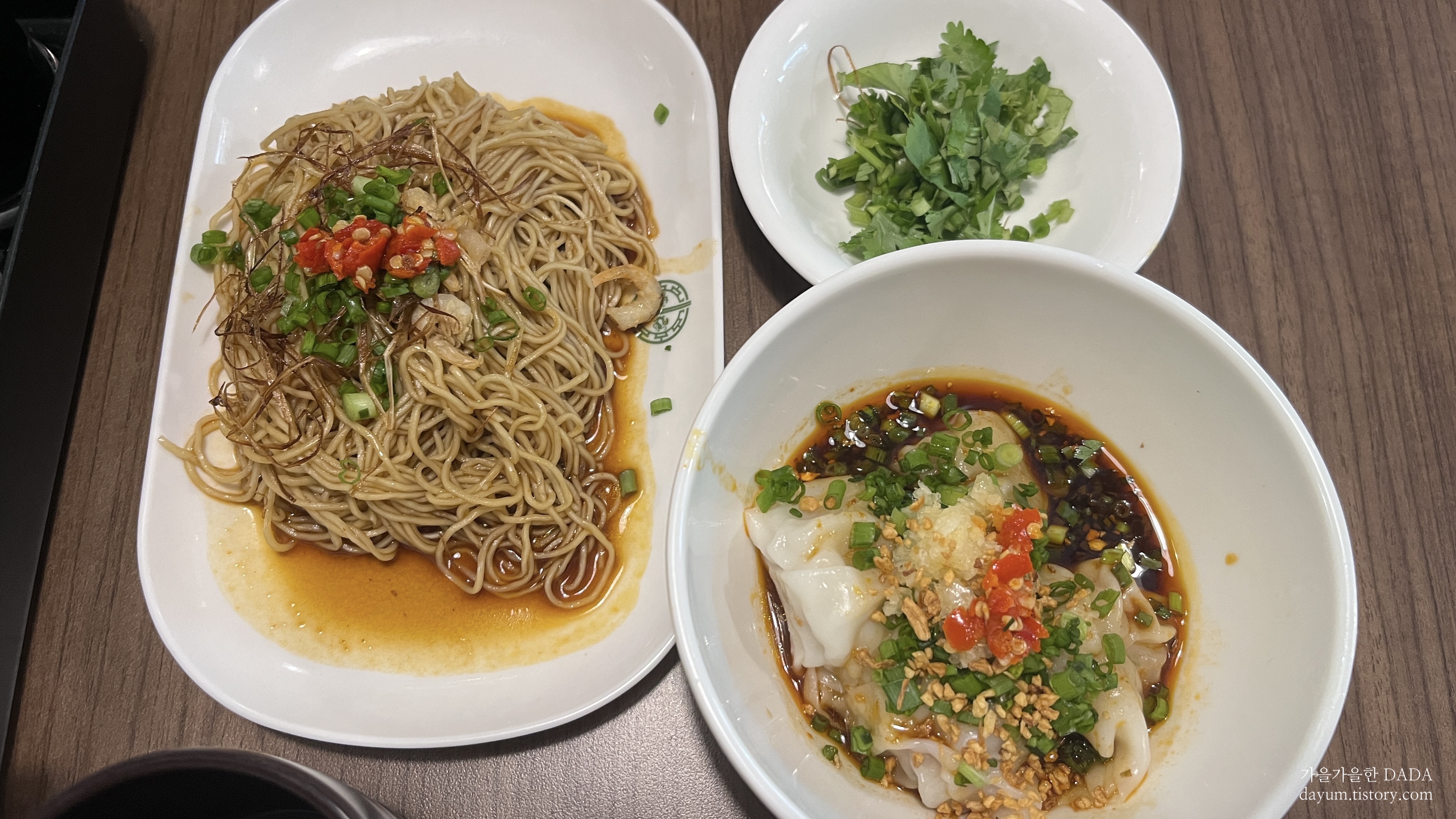 챠슈바오번이랑 하가우, 사천식 완탕 비빔면을 주문했는데, 둘이서 먹기에는 한참 부족한데 먹고 추가 주문하려다가 맛만보고 일어났다.