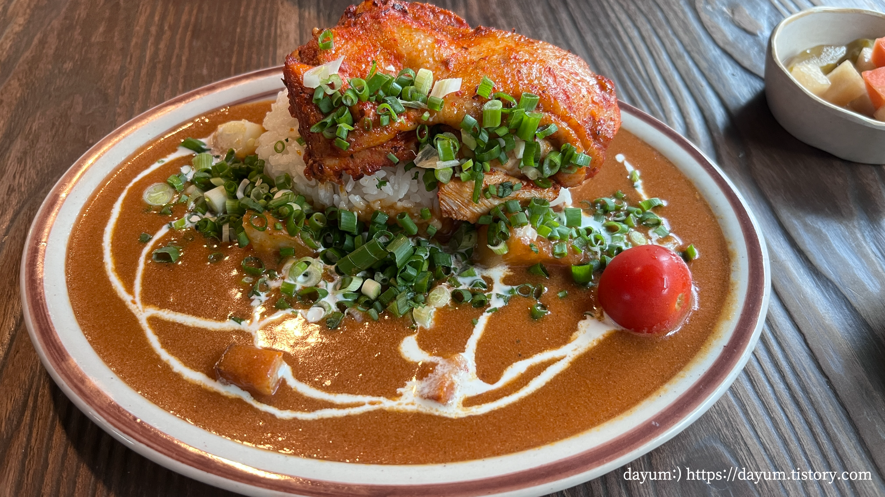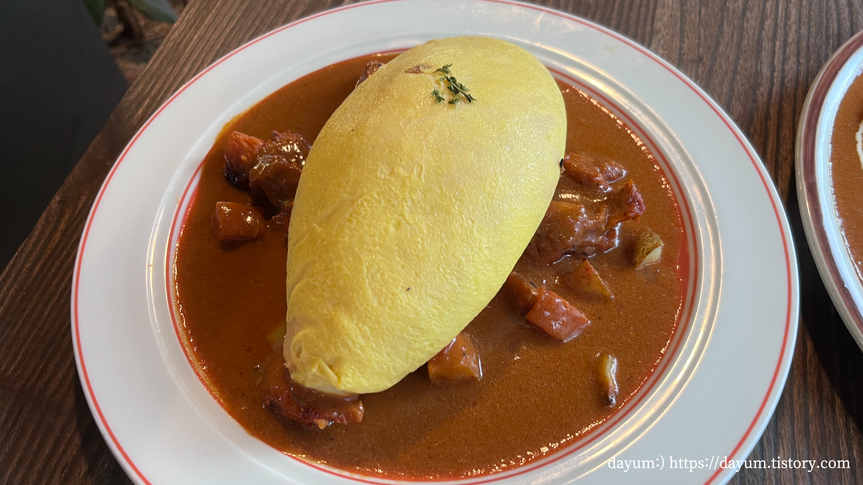 베이스 커리가 버터커리라서 맛이 유사하긴 한데 오믈렛이 올라가서 조금 더 부드럽다. 먹으면 먹을수록 느끼한 맛이 강해지는데 여기다가 라유에 갓김치까지 넣어서 먹는게 제일 맛있었다.