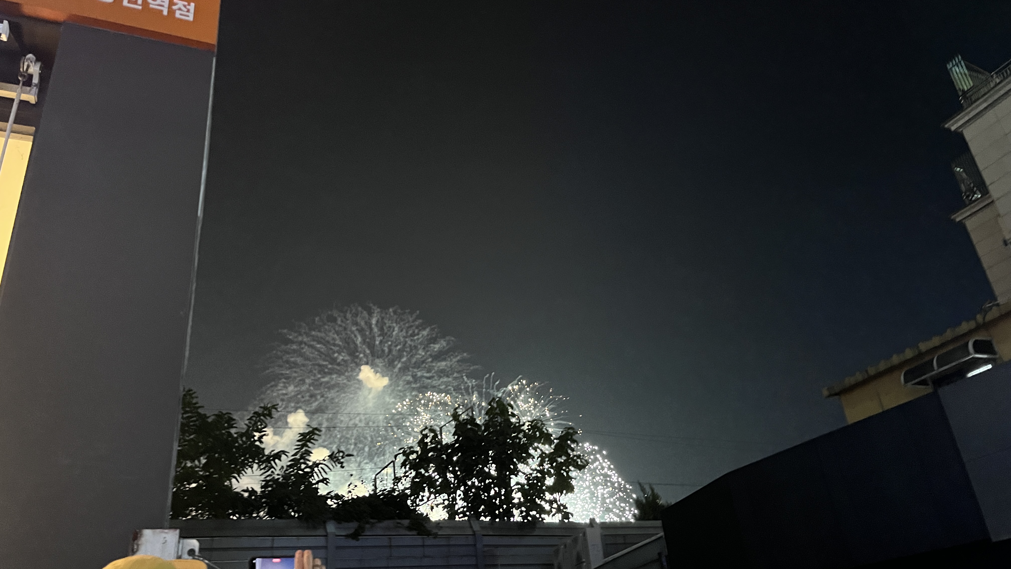방충망 사이로 좀 보다가 집에가서 실시간 너투브로 보자 하고 내려왔는데 노량진역 바로 옆에서 보였다.