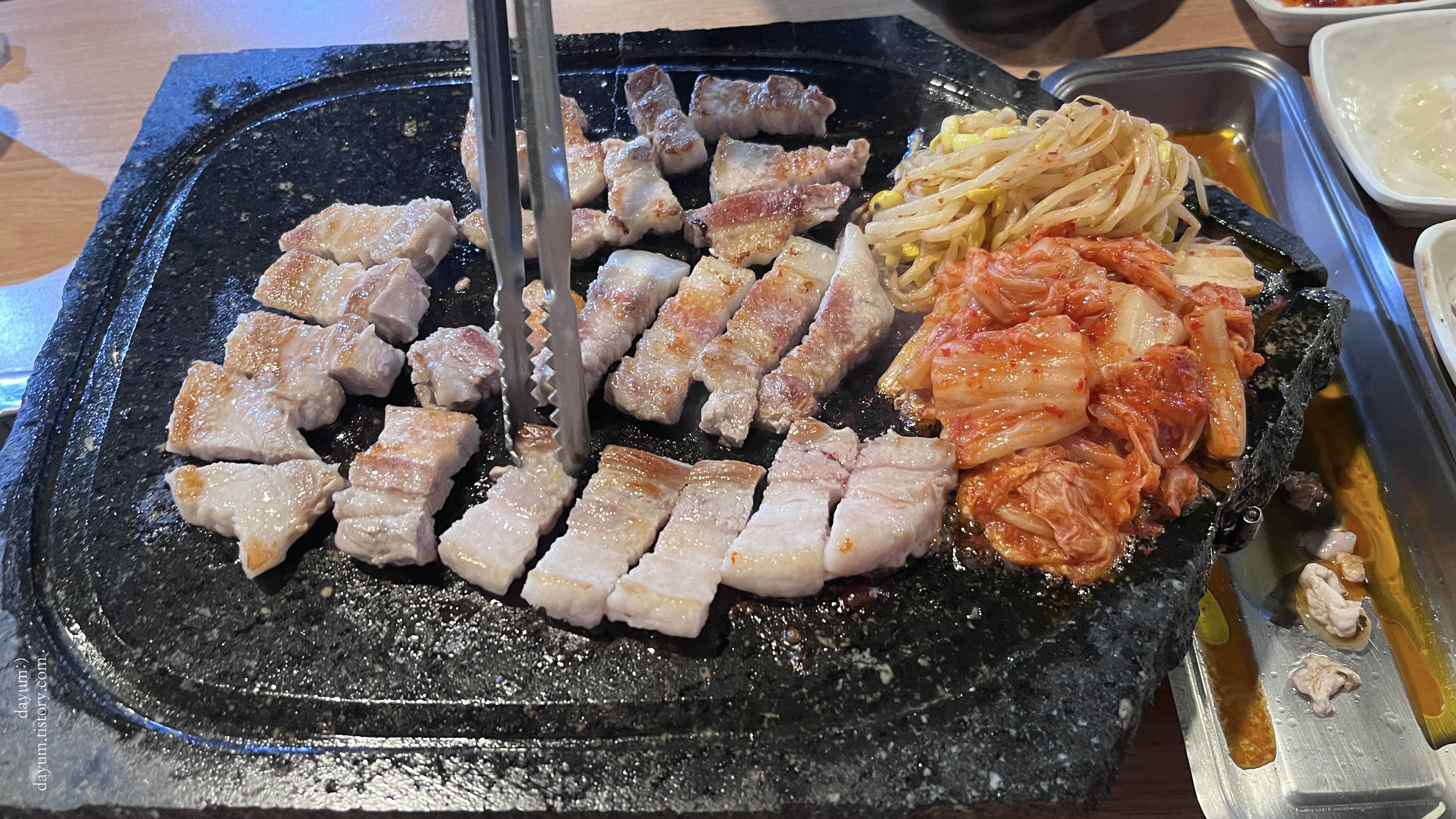 목살은 거의 스테이크 두께로 나오는데 돌판에 굽는거라 속까지 잘 익는다. 매우매우 맛있음.