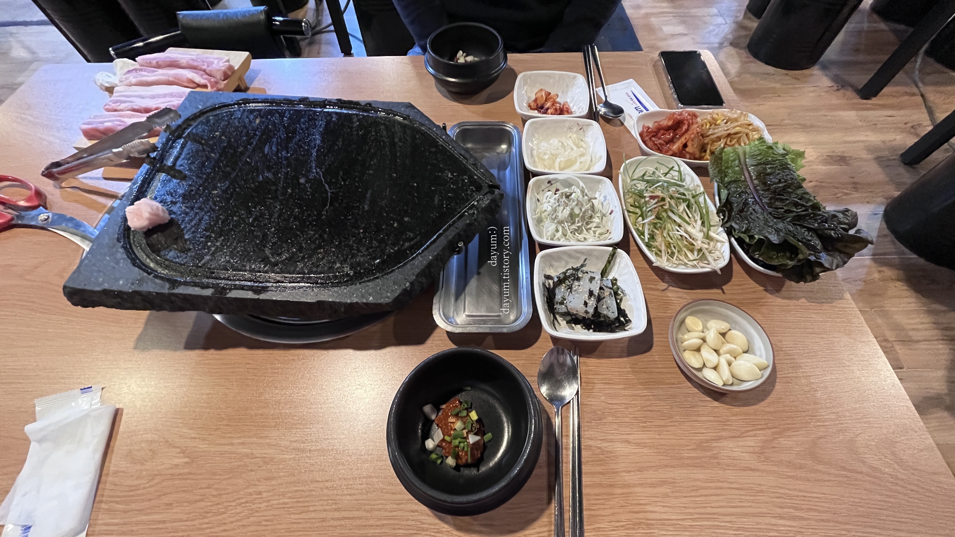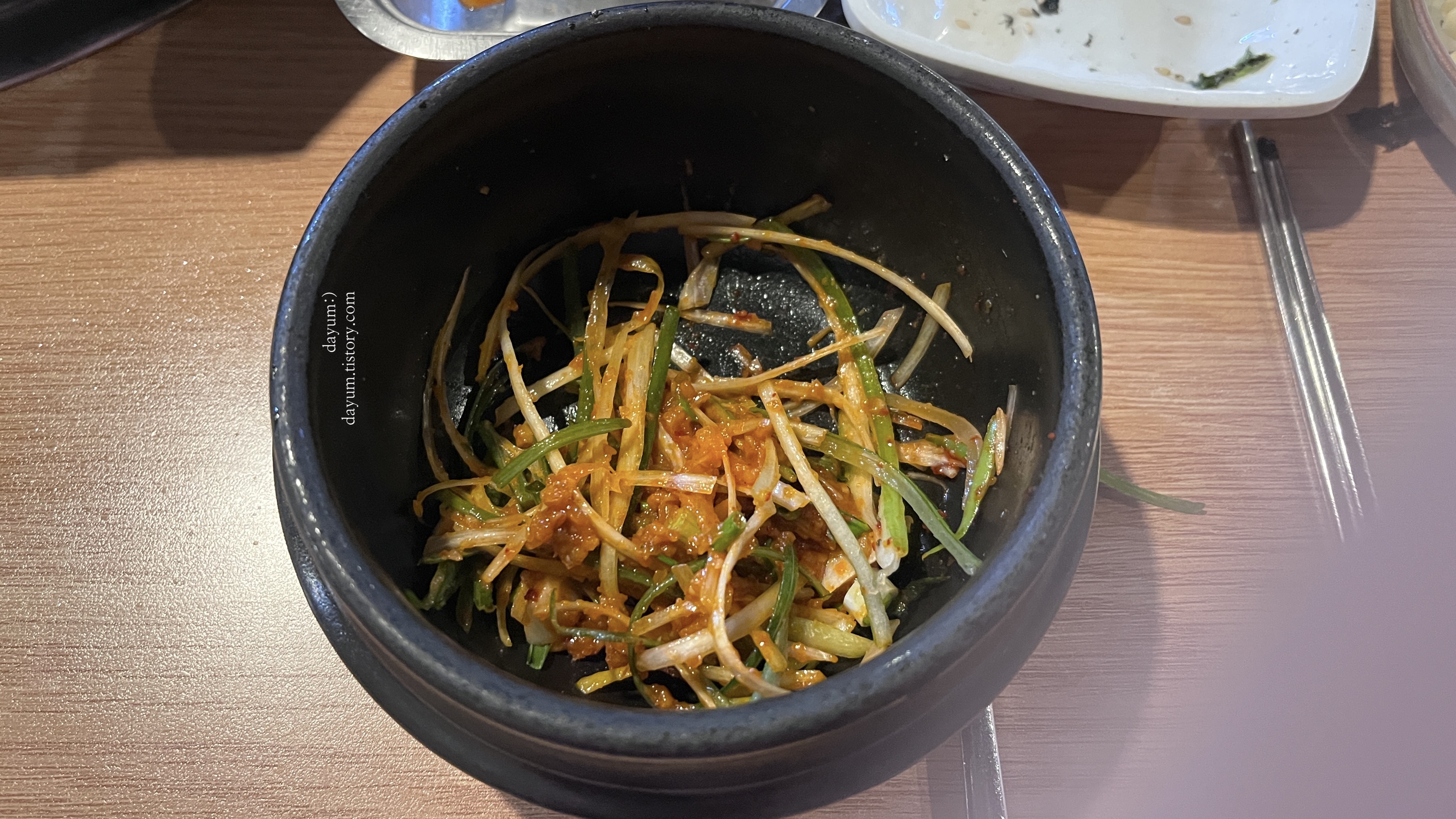 밑반찬도 모두 맛있지만 같이 나오는 파채를 각자에게 나오는 쌈짱이랑 섞어서 고기랑 싸먹으면 진짜 맛있다.