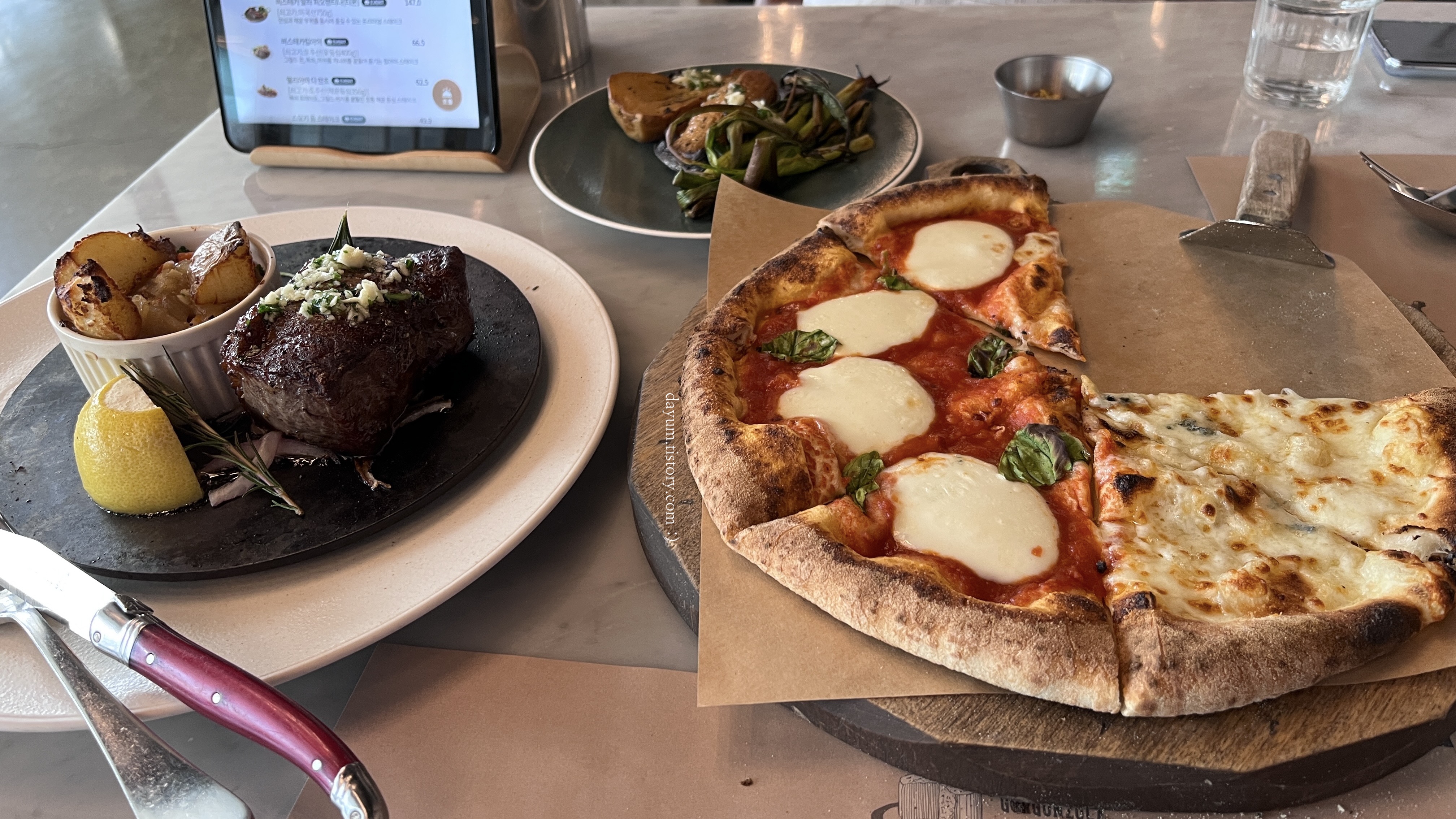 스테이크는 그냥... 시킴. 그냥, 파스타는 땡기는게 없지만 남편은 고기를 좋아하니까 - 하는 이유로 스테이크를 주문했다.