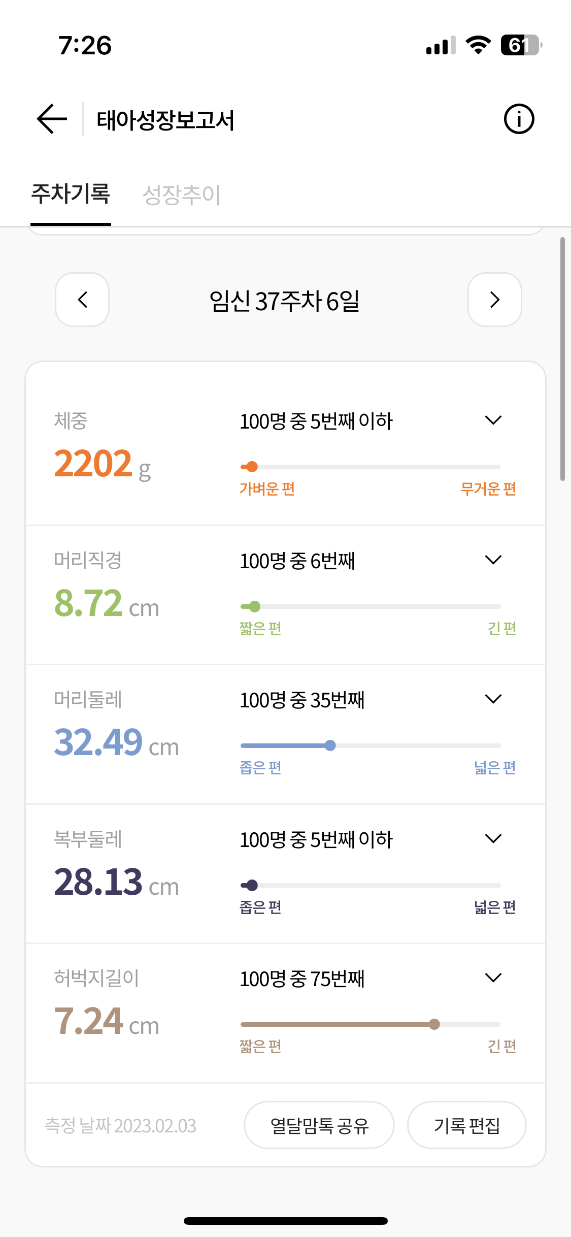 머리둘레나 다리길이는 잘 자라주었는데 배둘레가 줄어서 그런지 몸무게도 줄었다.